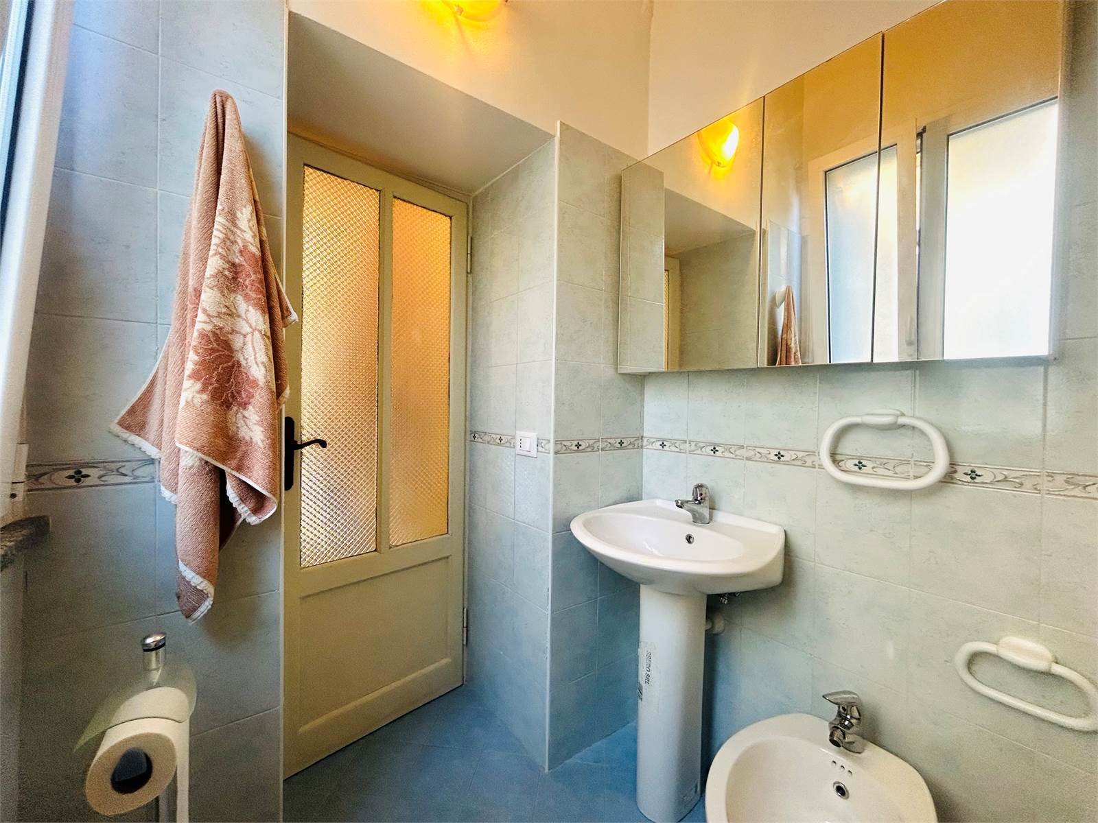 Il bagno adiacente è finestrato, ha la doccia e il boiler elettrico per l'acqua calda sanitaria.