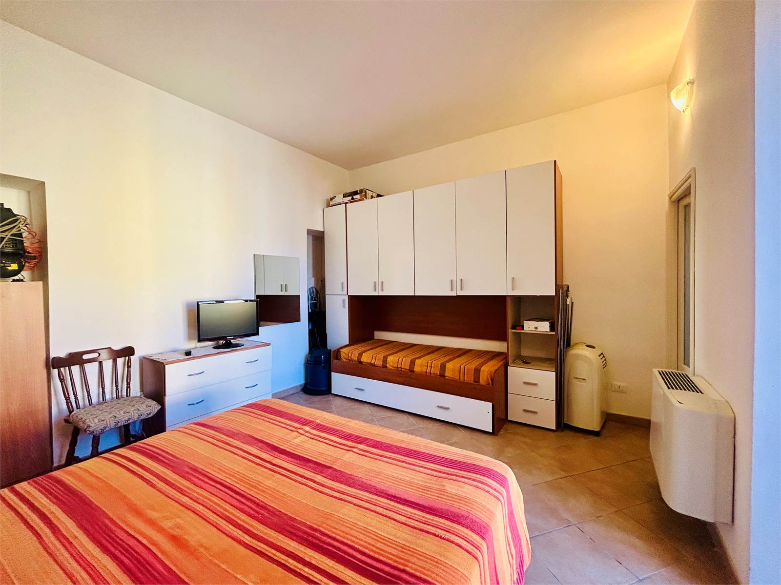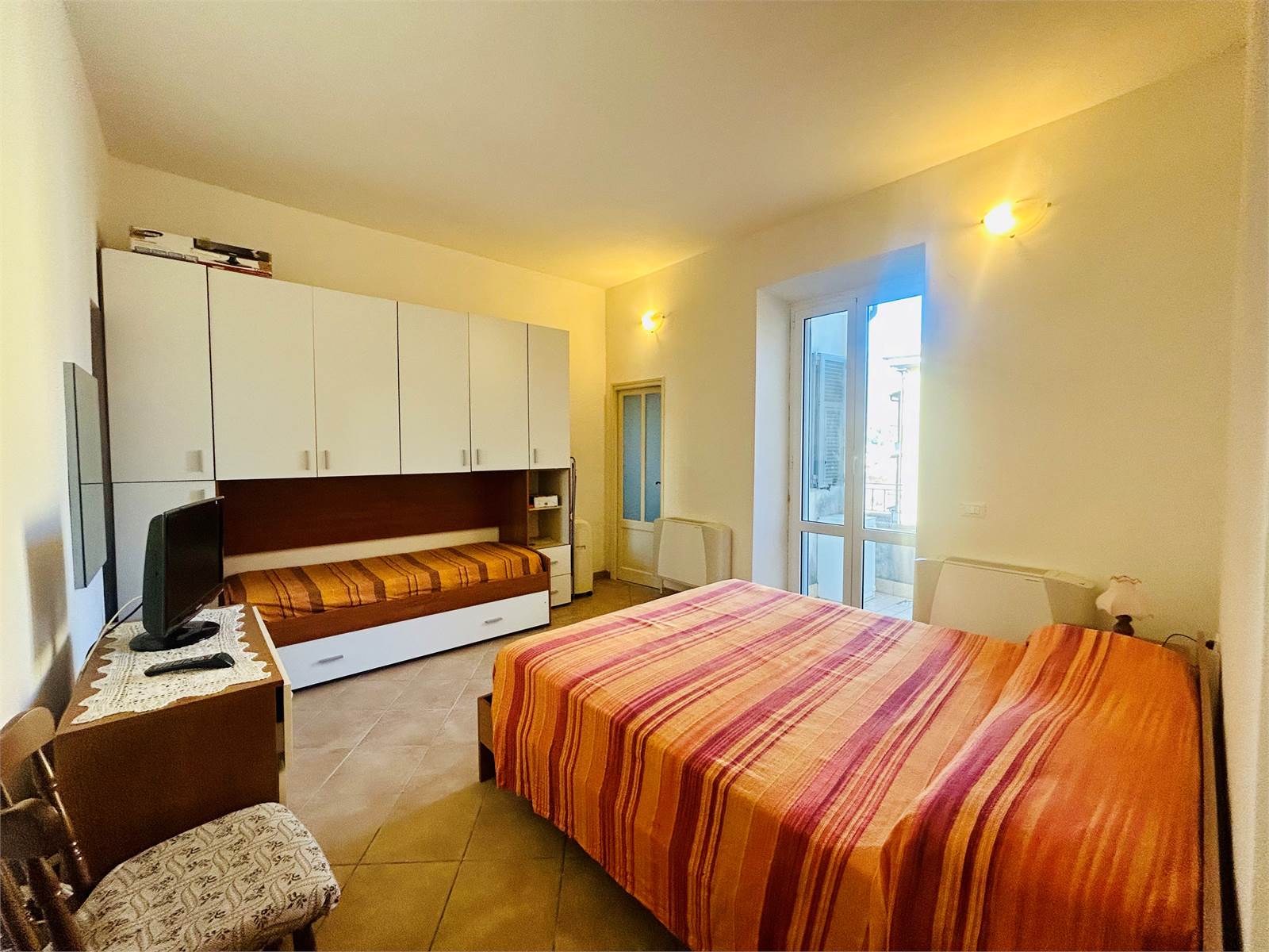 L'ampia camera permette di ospitare fino a quattro posti letto ed anch'essa ha la portafinestra per accedere al terrazzo.