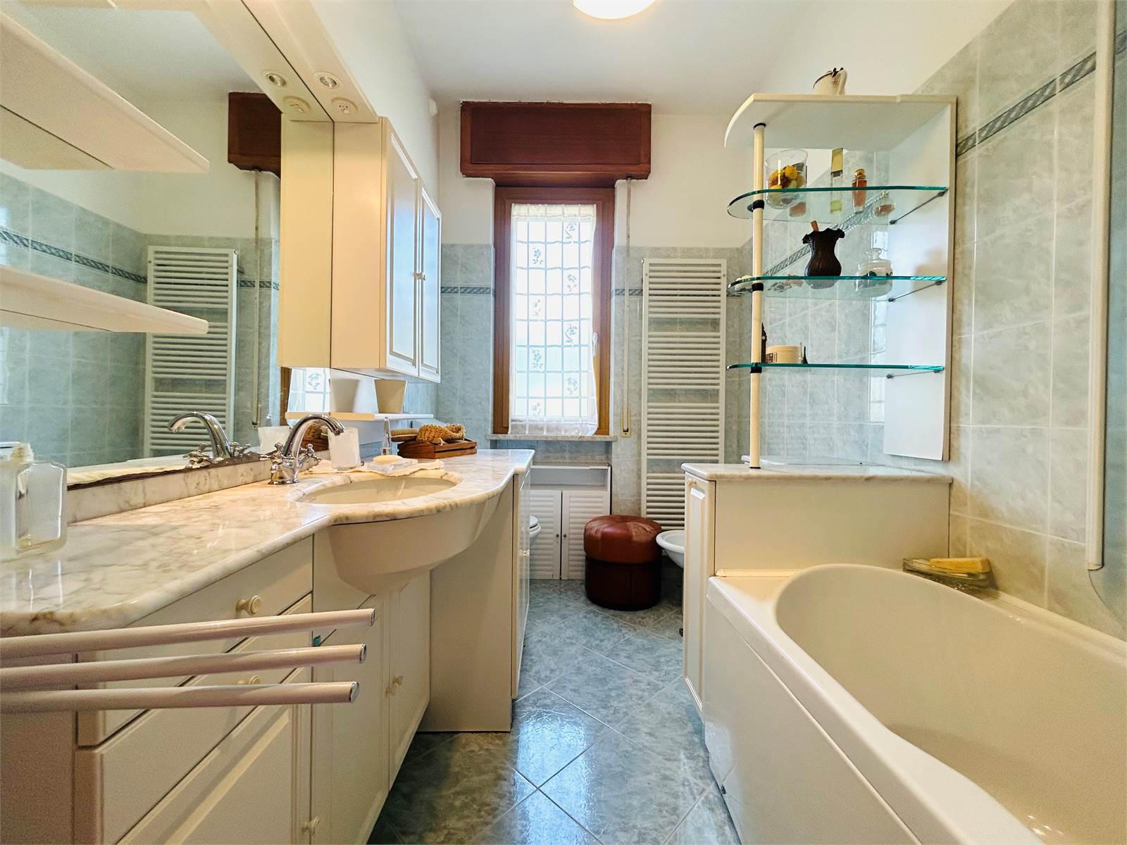 Il bagno è spazioso ed è dotato di vasca con doccia e finestra.