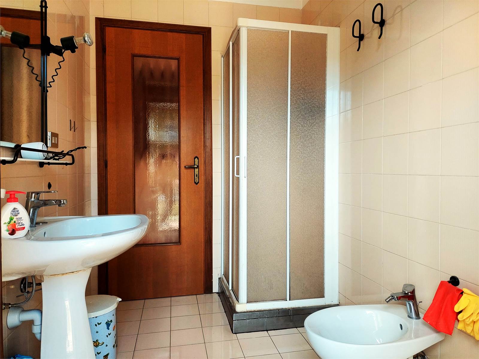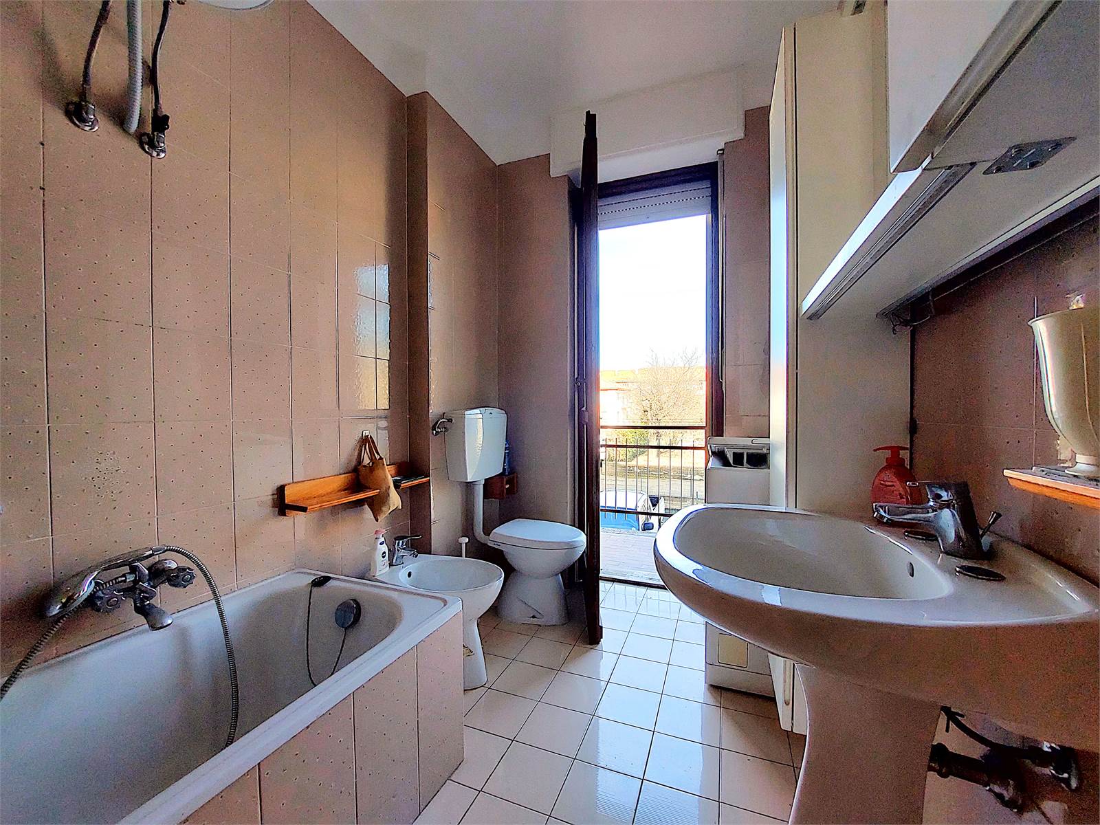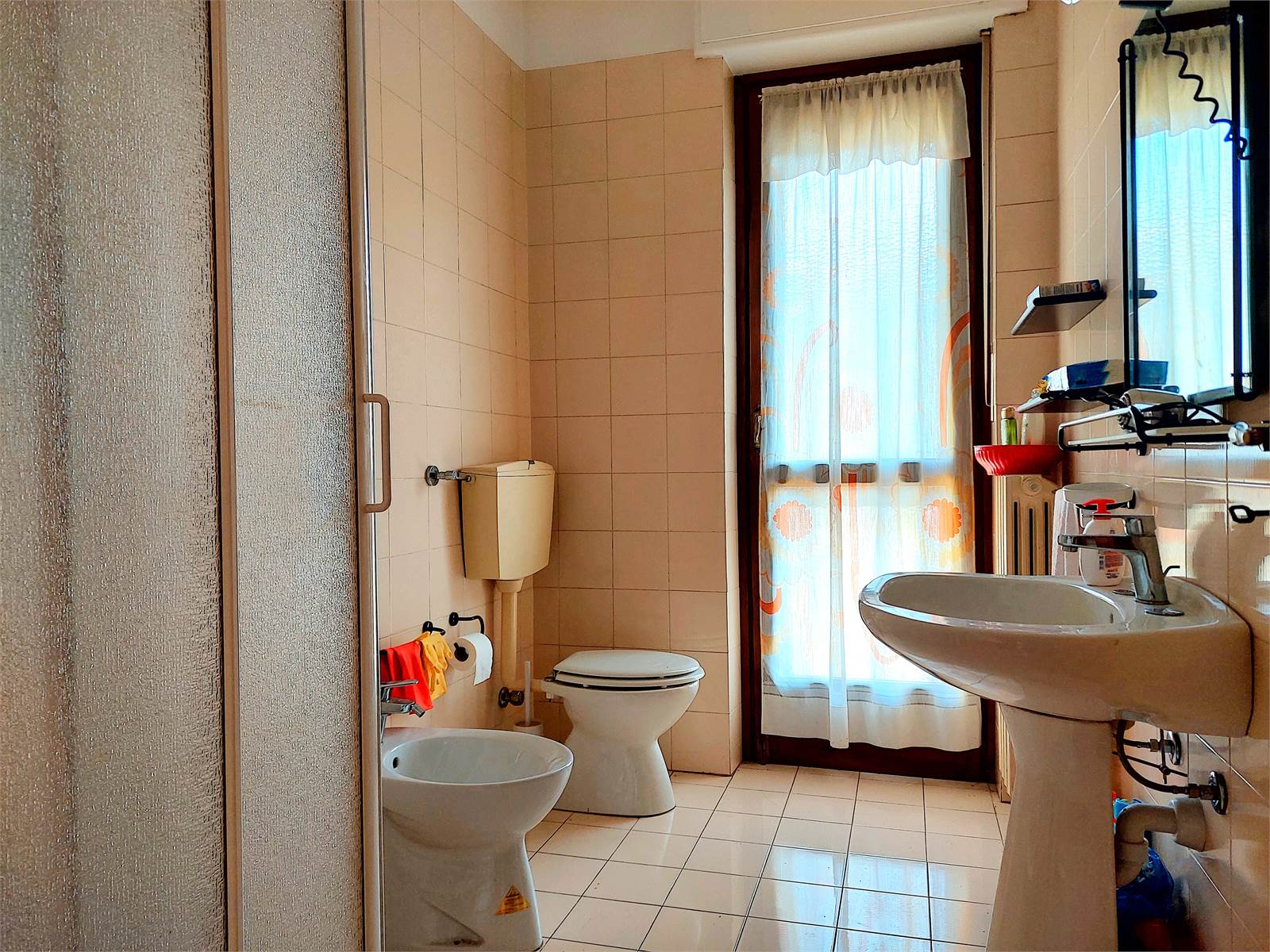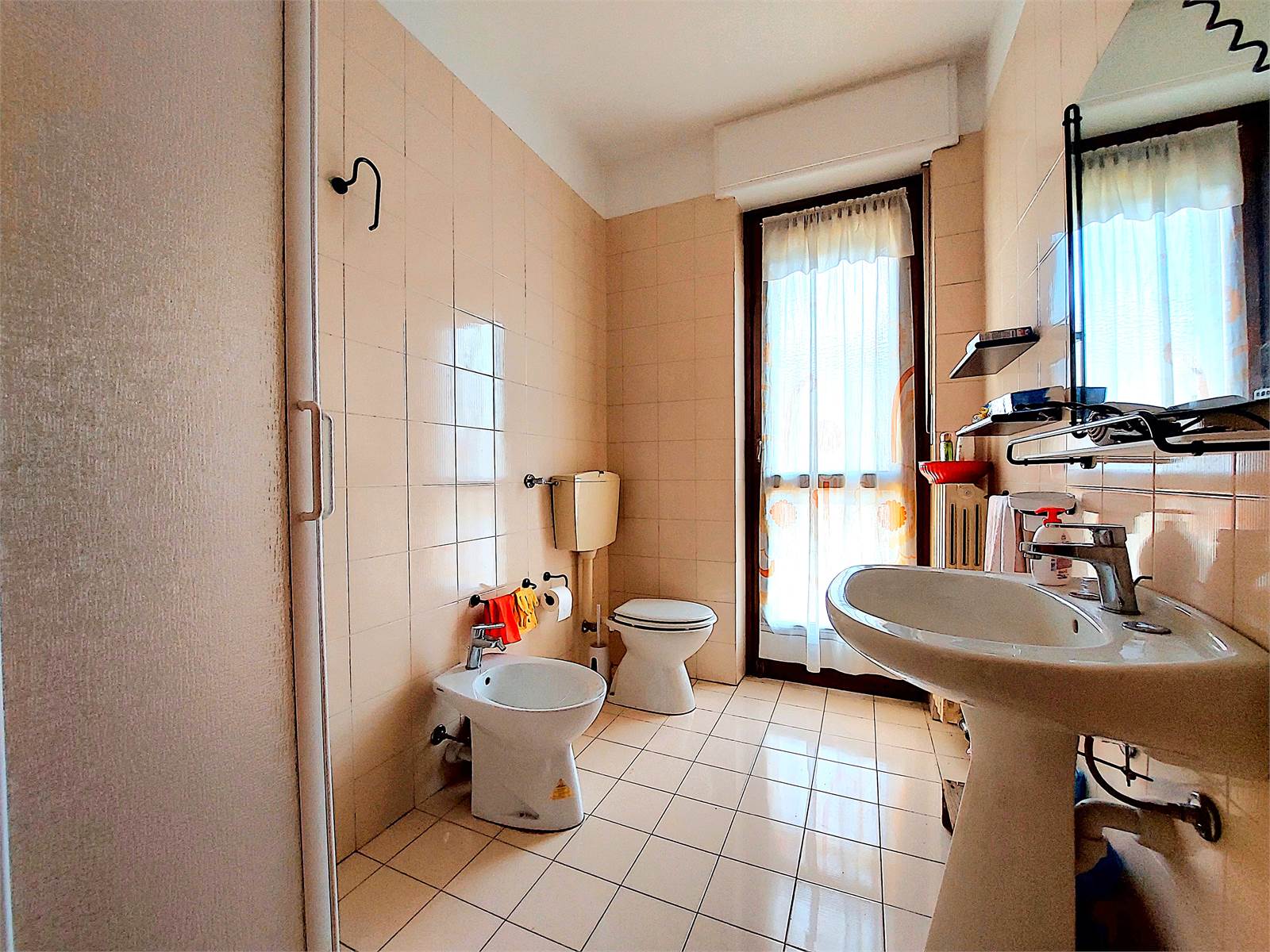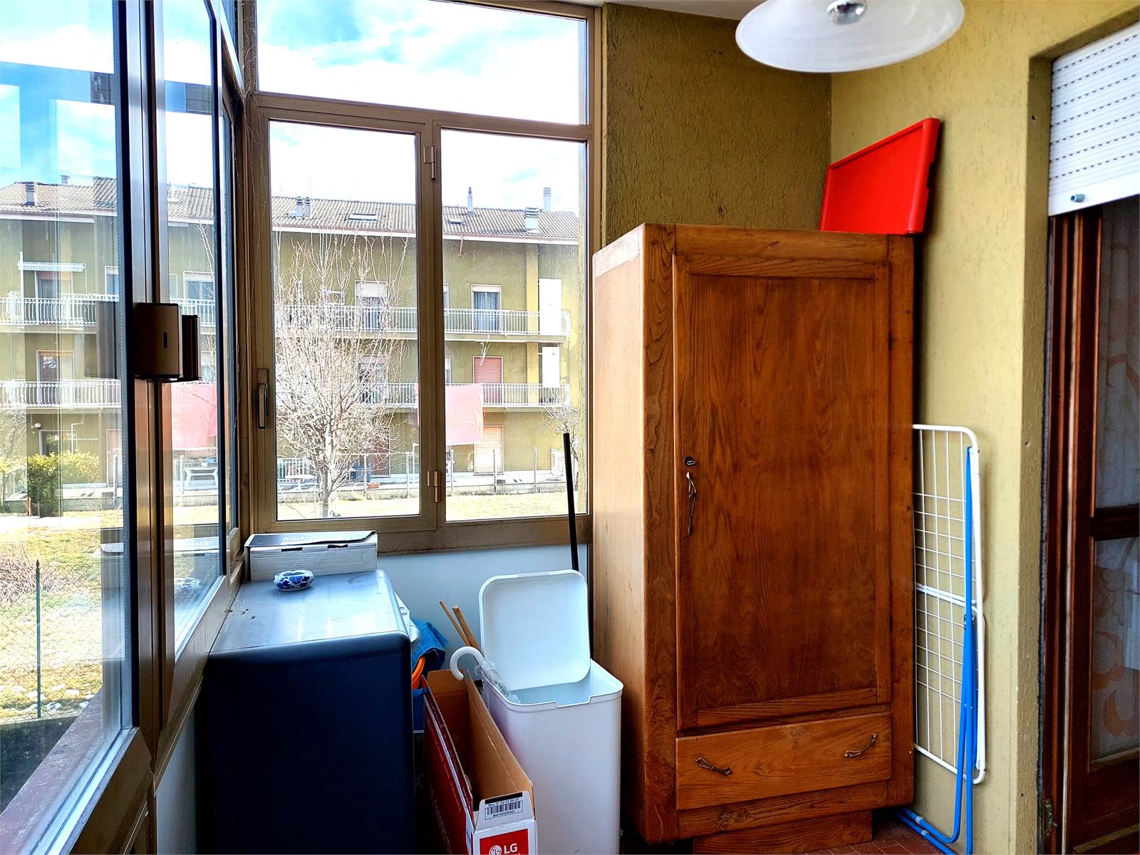 L'appartamento viene venduto ammobiliato e conserva materiali ed impianti degli anni Ottanta, epoca in cui è stato costruito lo stabile. I serramenti sono in legno ed hanno i doppi vetri.