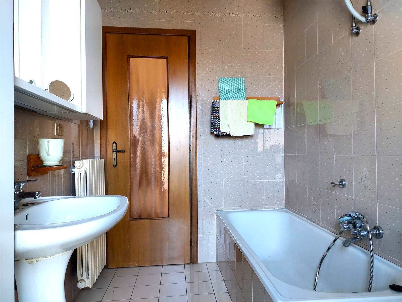 L'alloggio ha l'impianto di riscaldamento a termosifoni alimentati dalla caldaia condominiale centralizza a metano, mentre l'acqua calda sanitaria è prodotto dal boiler elettrico individuale.