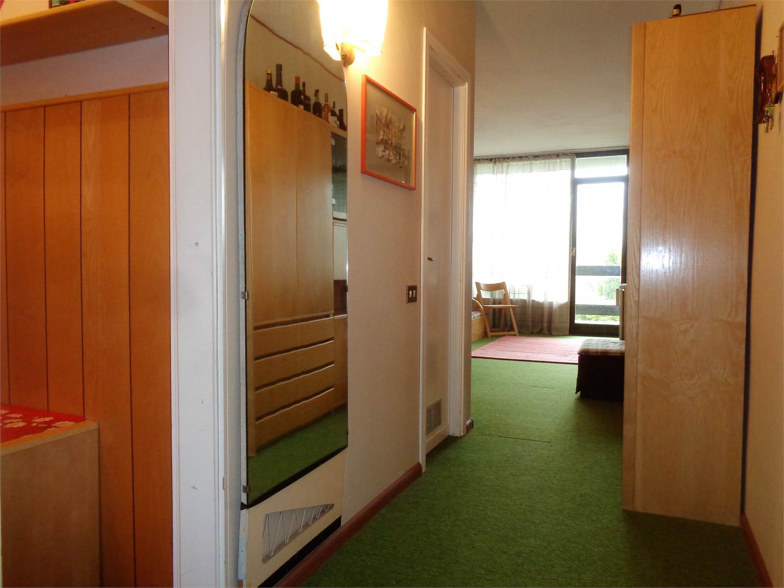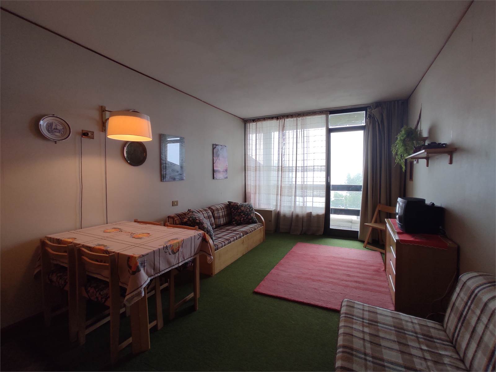 La portafinestra del locale permette di uscire sul terrazzo di circa 10 mq la cui vista è aperta sulle piste da sci.