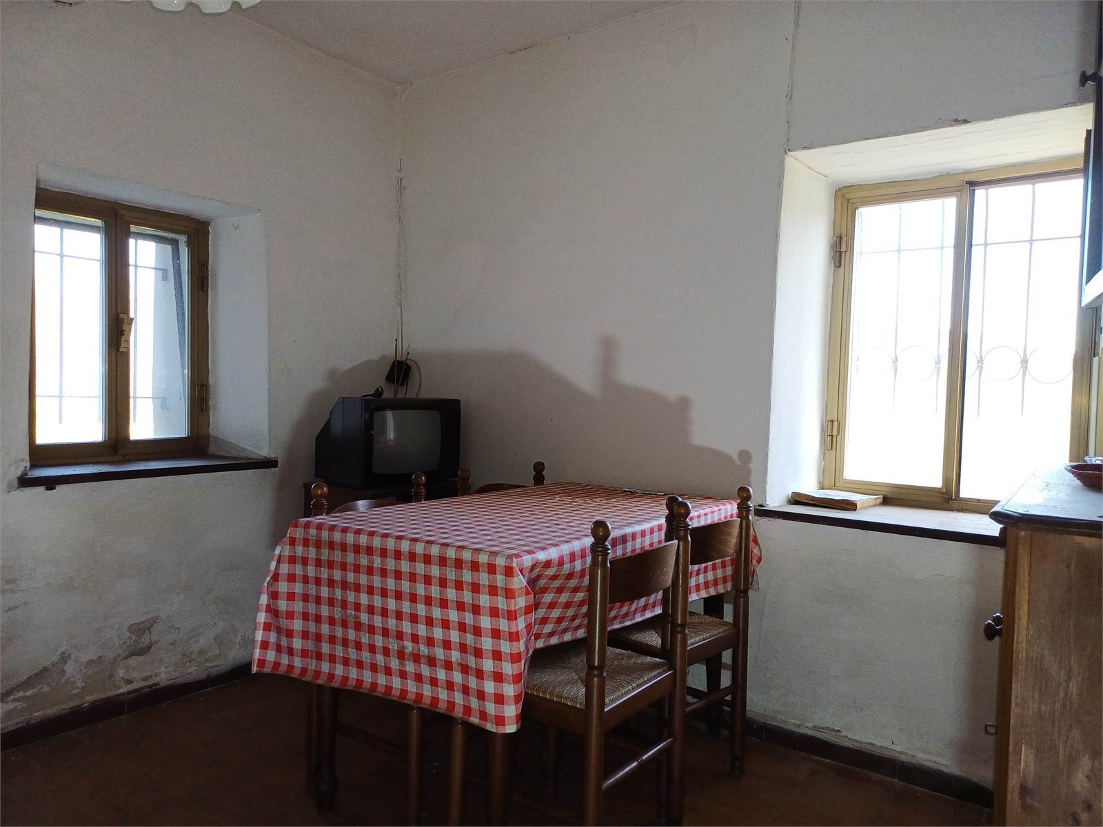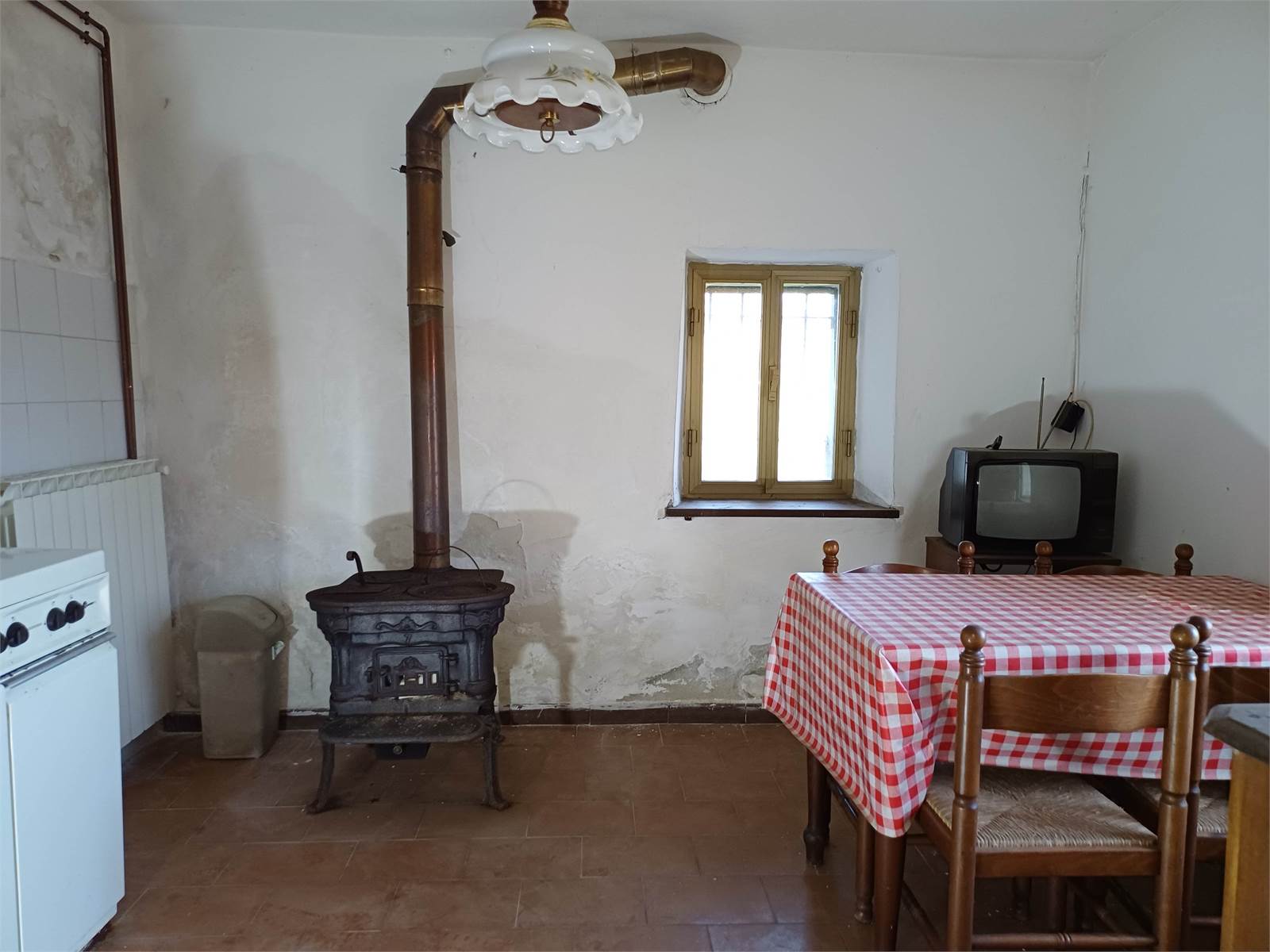 Al piano terra della casa indipendente sono presenti due magazzini con accesso esterno, mentre all'ingresso dell'abitazione si accede all'ampio disimpegno che conduce alla cucina abitabile con due finestre e dotata di stufa a legna.