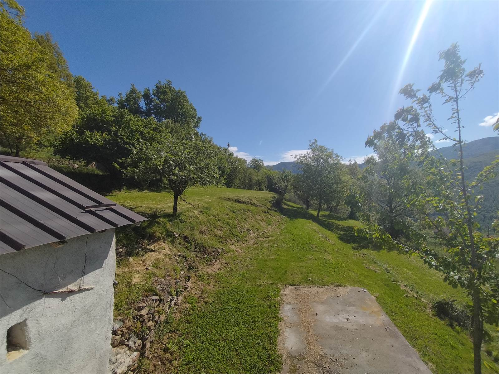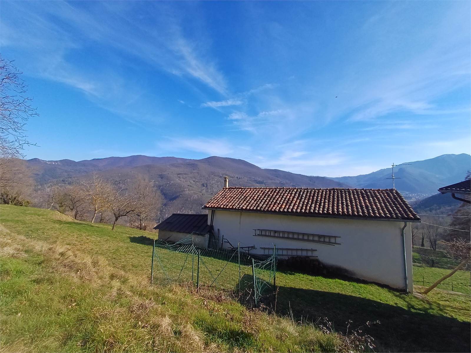 Di fronte alla casa è presente uno spazioso giardino pianeggiante con pergolato, dove è possibile godere della vista panoramica sulle montagne circostanti.