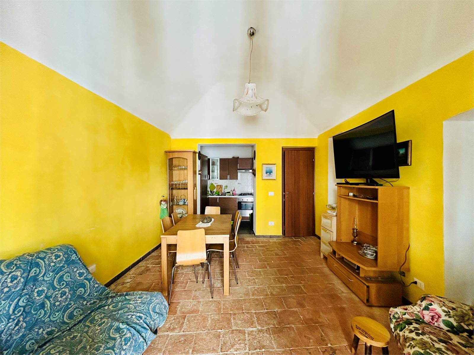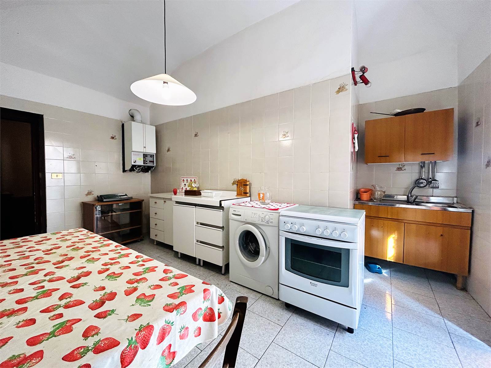 La cucina è abitabile ed affaccia sulla piazza del Comune.