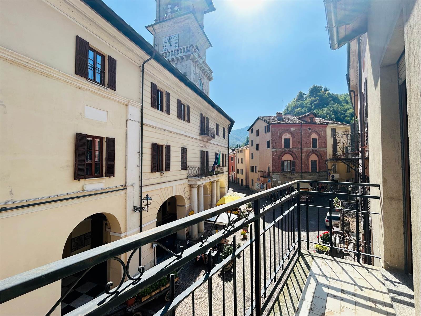 Il soggiorno è spazioso ed è aperto sull’angolo cottura, grazie alla portafinestra si esce sul balcone che affaccia sulla piazza del Municipio.