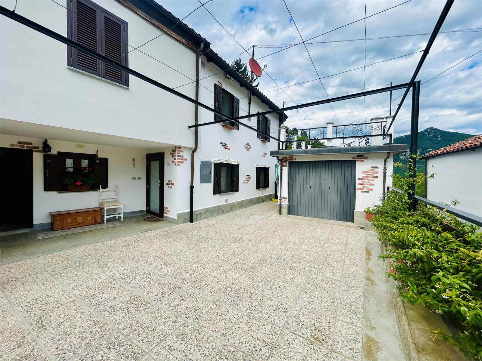 Il cortile piastrellato, antistante all'abitazione misura circa 35 mq. Ha due accessi indipendenti, uno pedonale e uno carrabile per permettere di parcheggiare l'auto nel garage di pertinenza.
