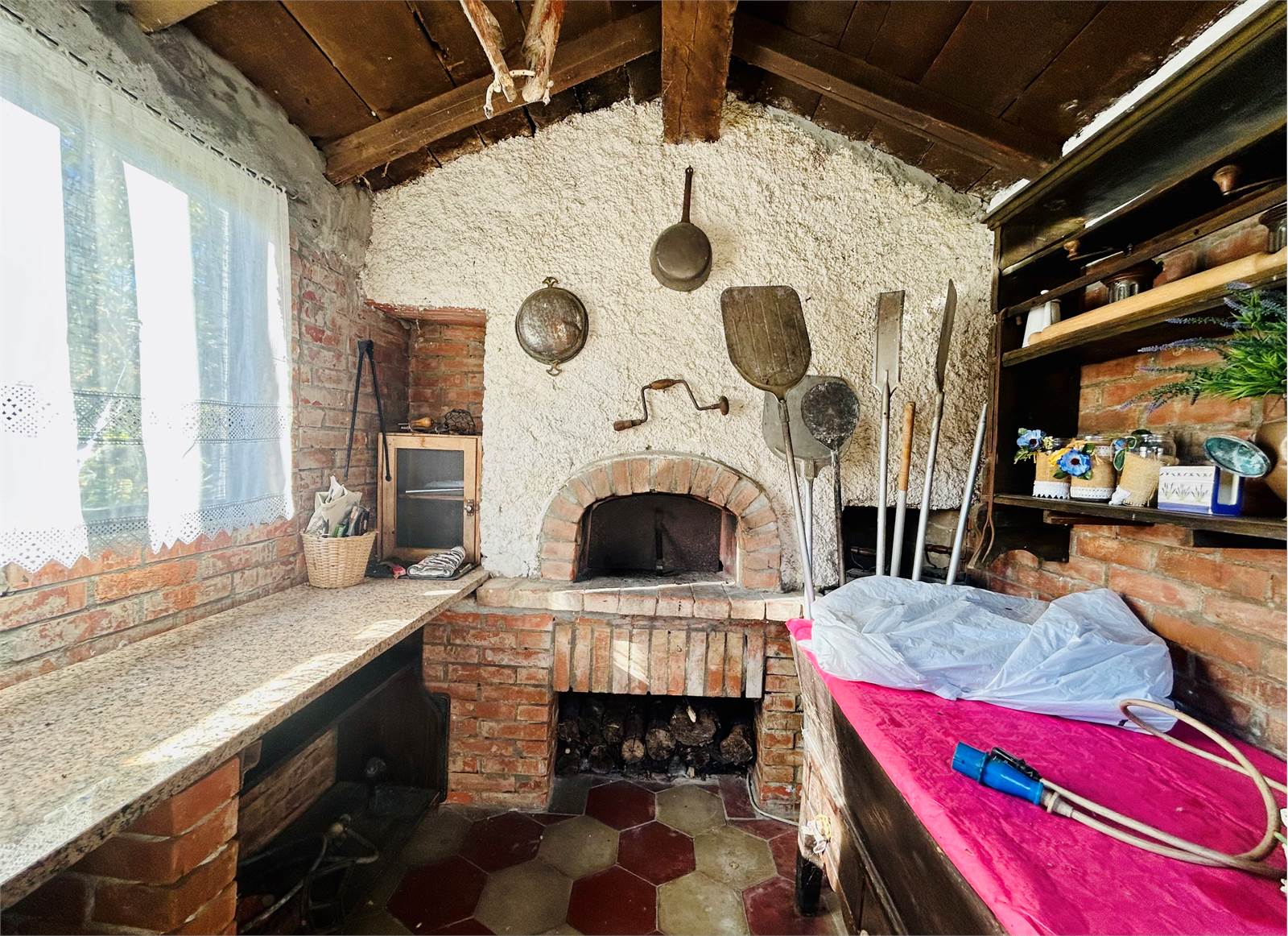 Al piano terra con il suo ingresso indipendente c'è la tavernetta di circa 20 mq che ospita un angolo cottura e una stufa a legna. Il bagno di servizio esterno è dotato di lavatrice e boiler.