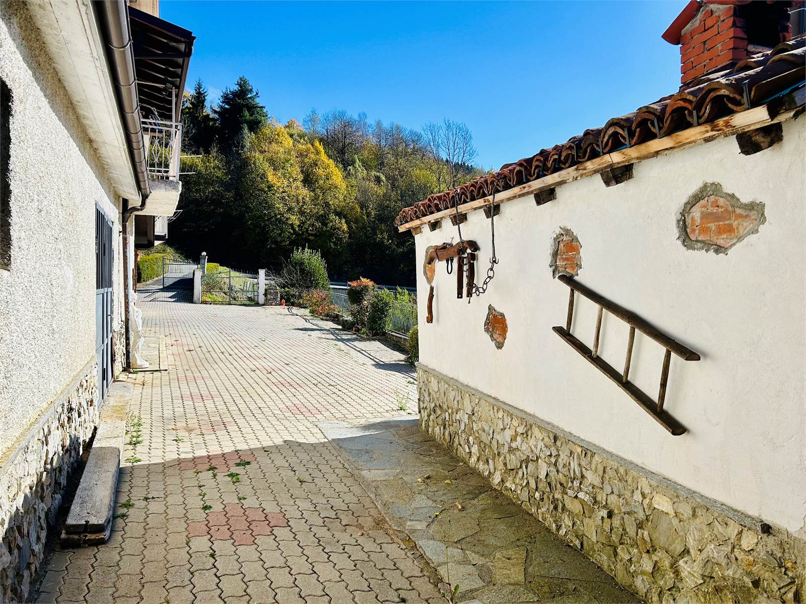 La proprietà è completata da 13.000 metri di terreno semi pianeggiante posti frontalmente, con al suo interno una legnaia e un ampio ricovero attrezzi. I restanti 8.500 metri sono boschivi e si trovano sul retro della casa.