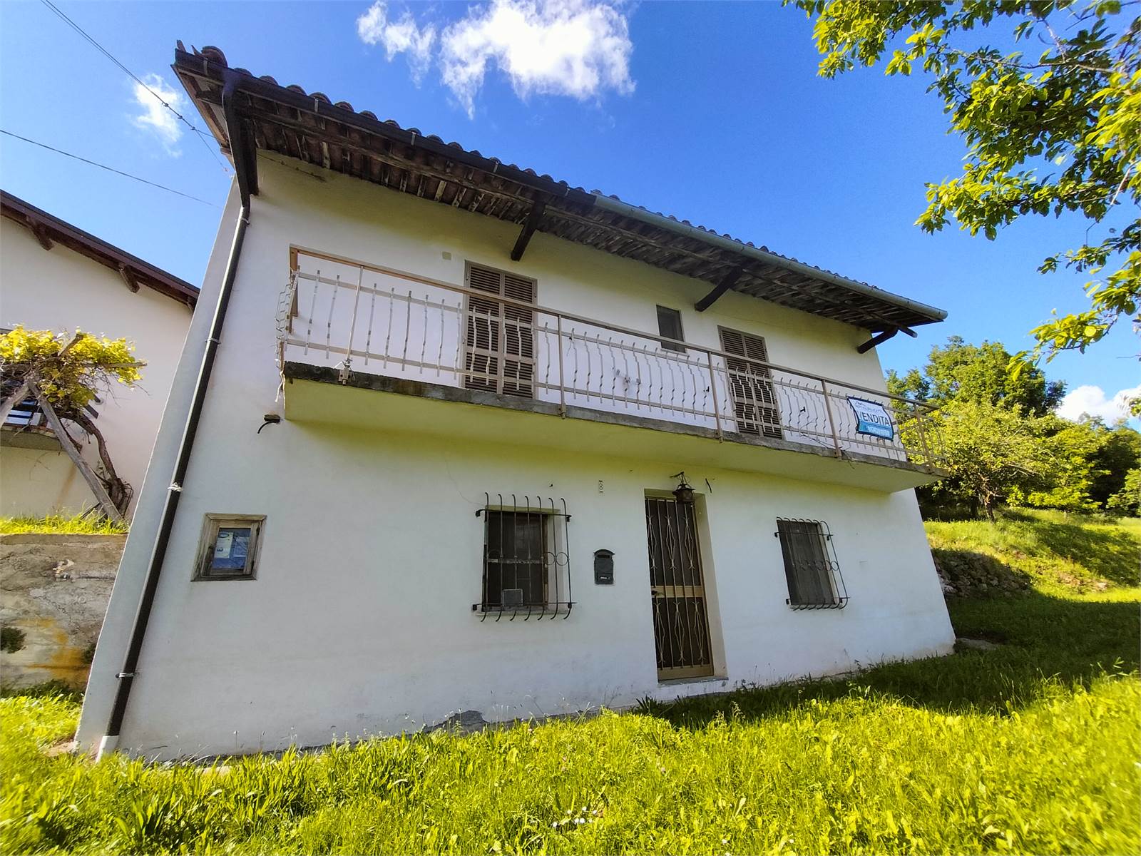 Di fronte alla casa è presente uno spazioso giardino pianeggiante con pergolato, dove è possibile godere della vista panoramica sulle montagne circostanti.