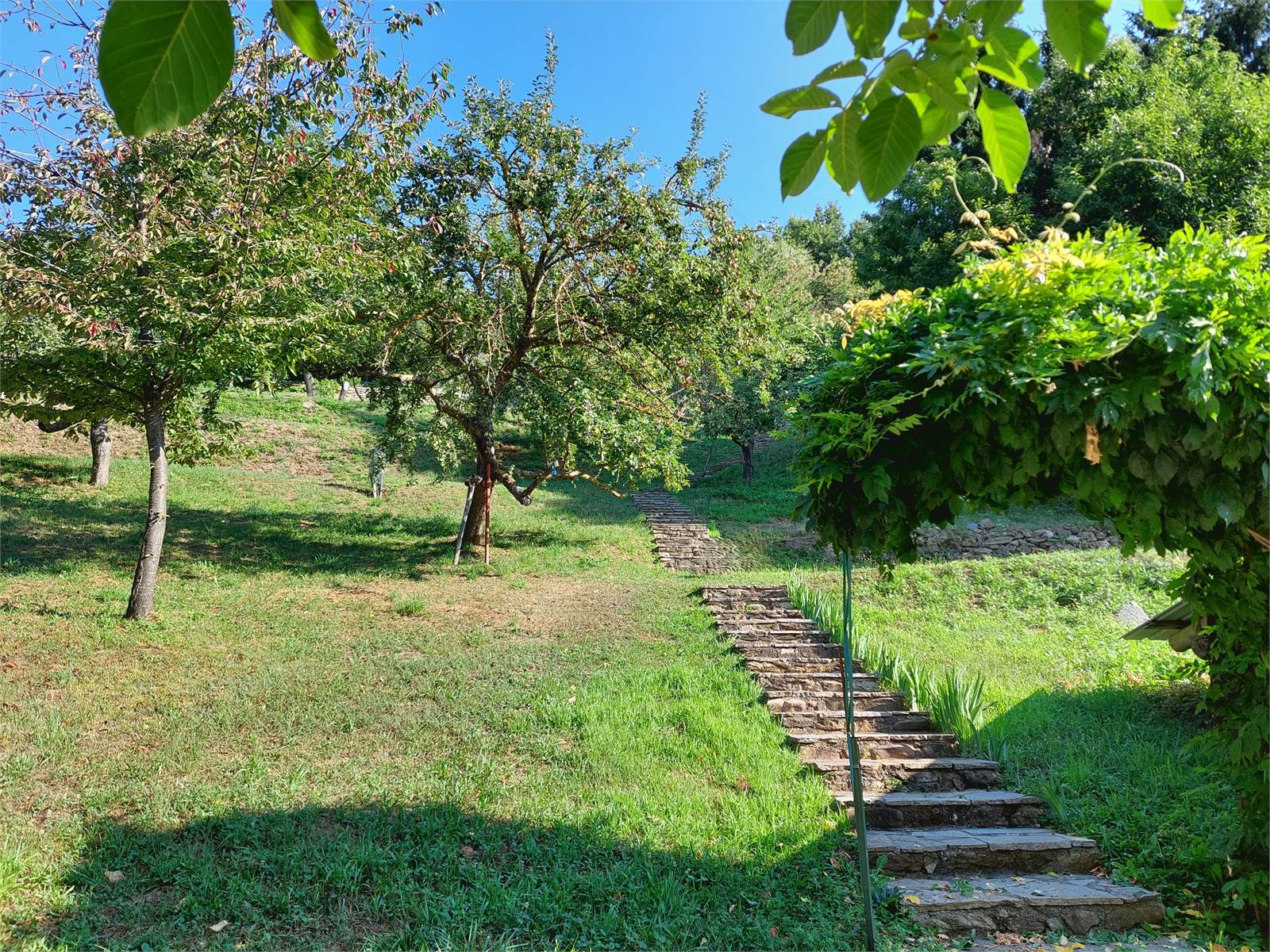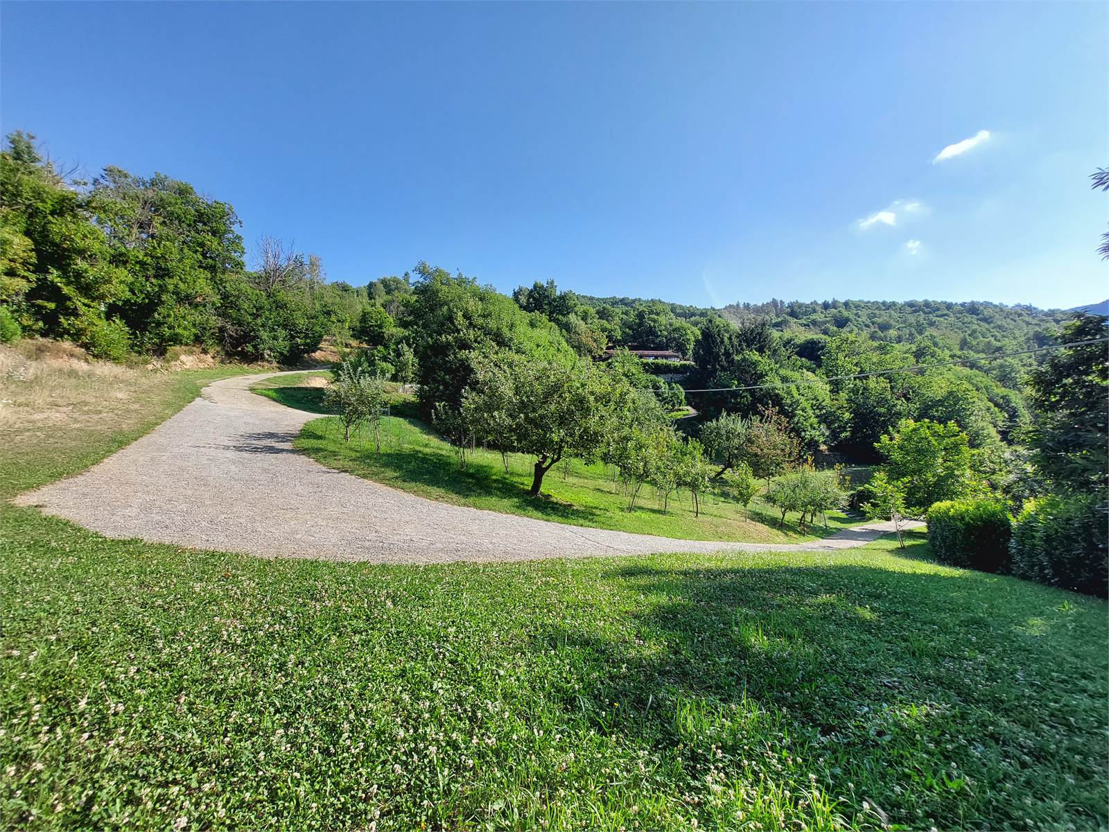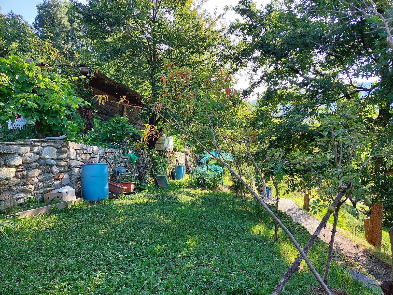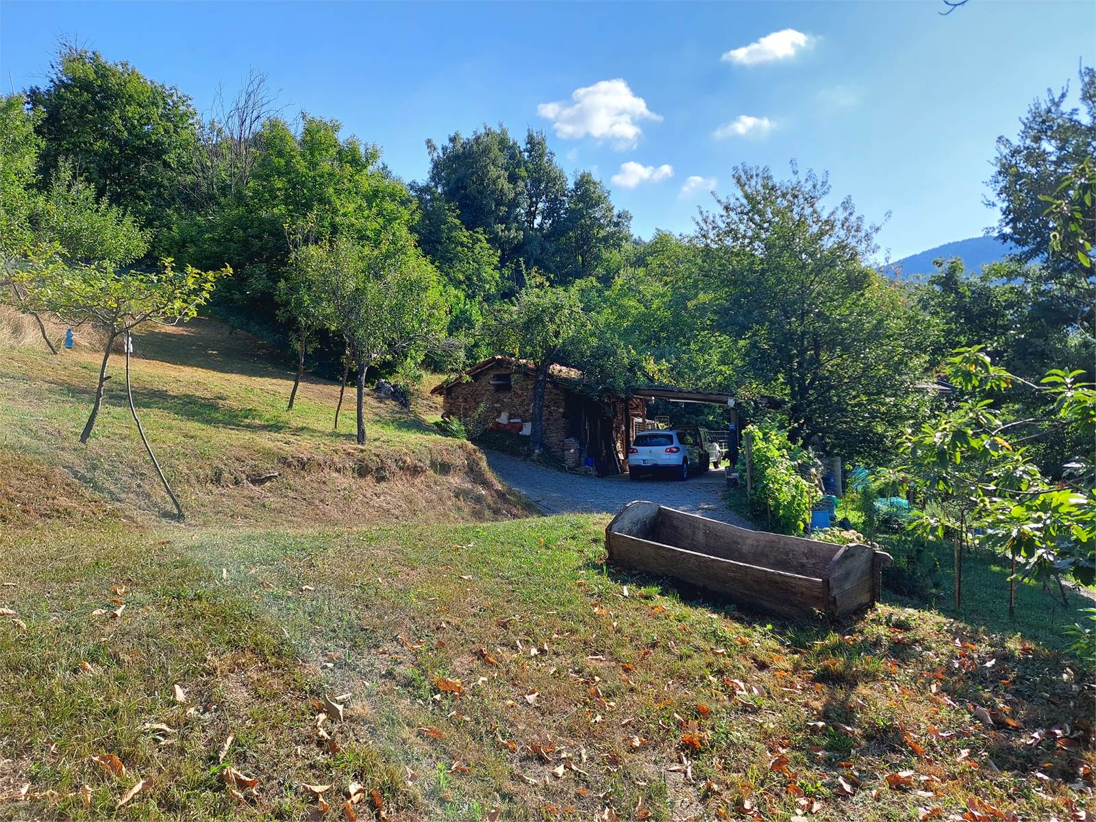 La cascina è circondata sui quattro lati da terreno privato che misura circa 36.000 metri quadrati. Nel terreno sono presenti due fabbricati rustici indipendenti in pietra ad uso ricovero attrezzi e ci sono una parte di bosco di castagni, frutteto di con peri e meli e prati. La proprietà è servita da una sorgente privata con vasche di decantazione e cisterne a cui attualmente è allacciata la casa, ma al confine della proprietà è anche presente l'acquedotto comunale.