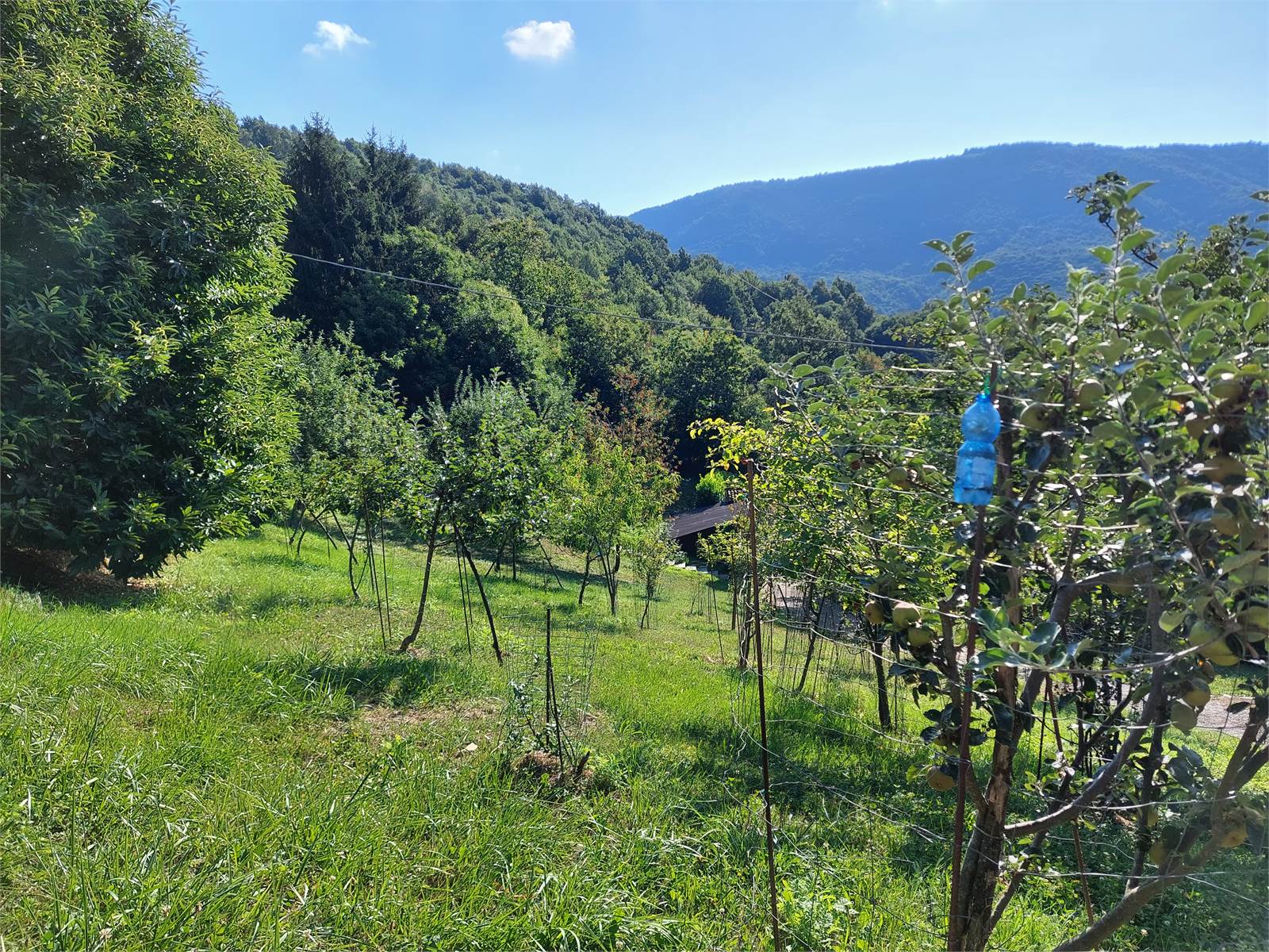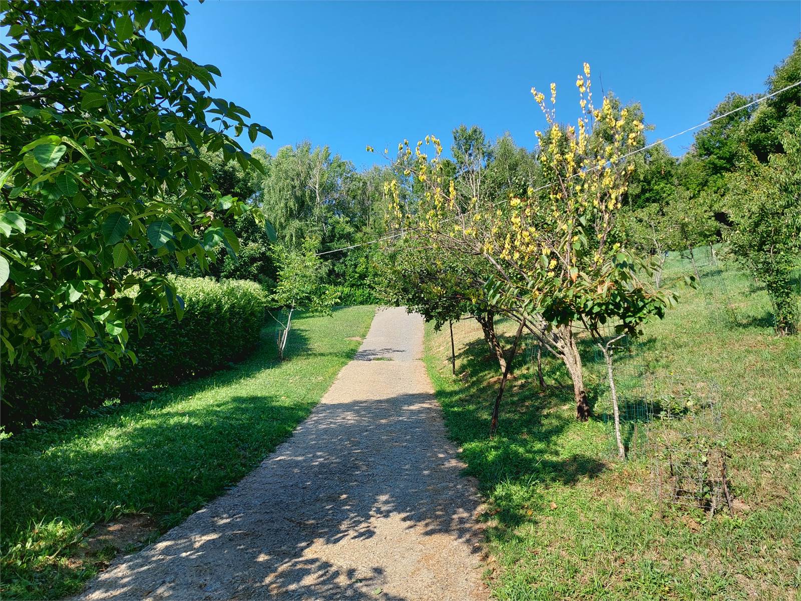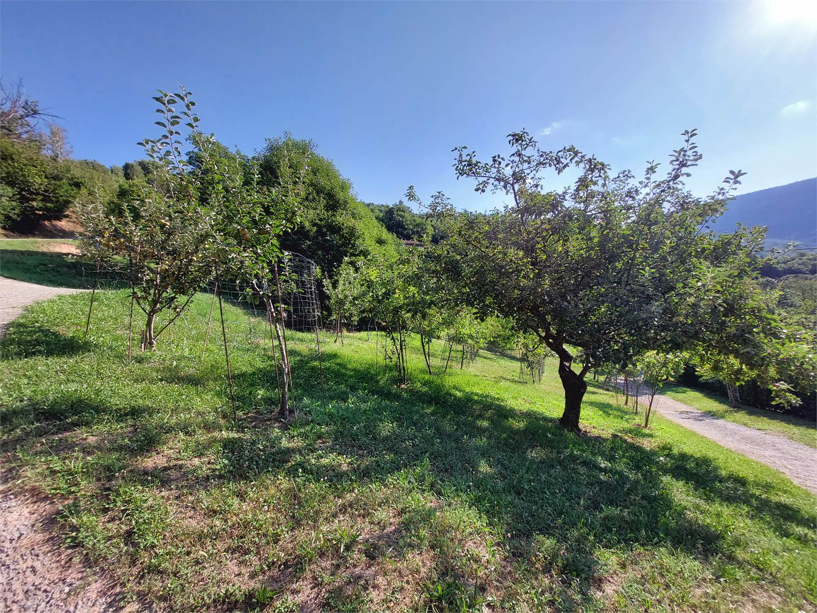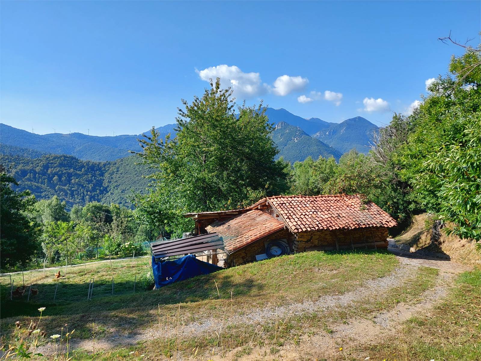 La cascina è circondata sui quattro lati da terreno privato che misura circa 36.000 metri quadrati. Nel terreno sono presenti due fabbricati rustici indipendenti in pietra ad uso ricovero attrezzi e ci sono una parte di bosco di castagni, frutteto di con peri e meli e prati. La proprietà è servita da una sorgente privata con vasche di decantazione e cisterne a cui attualmente è allacciata la casa, ma al confine della proprietà è anche presente l'acquedotto comunale.