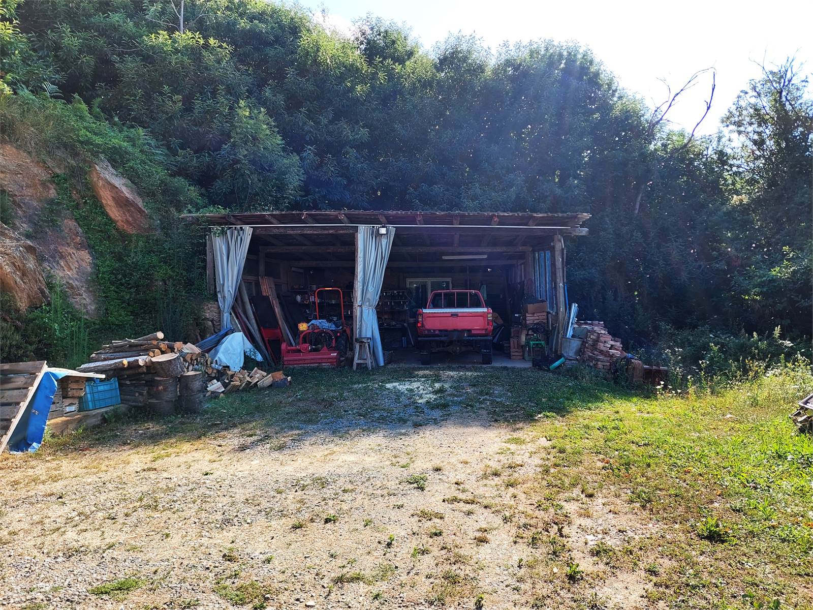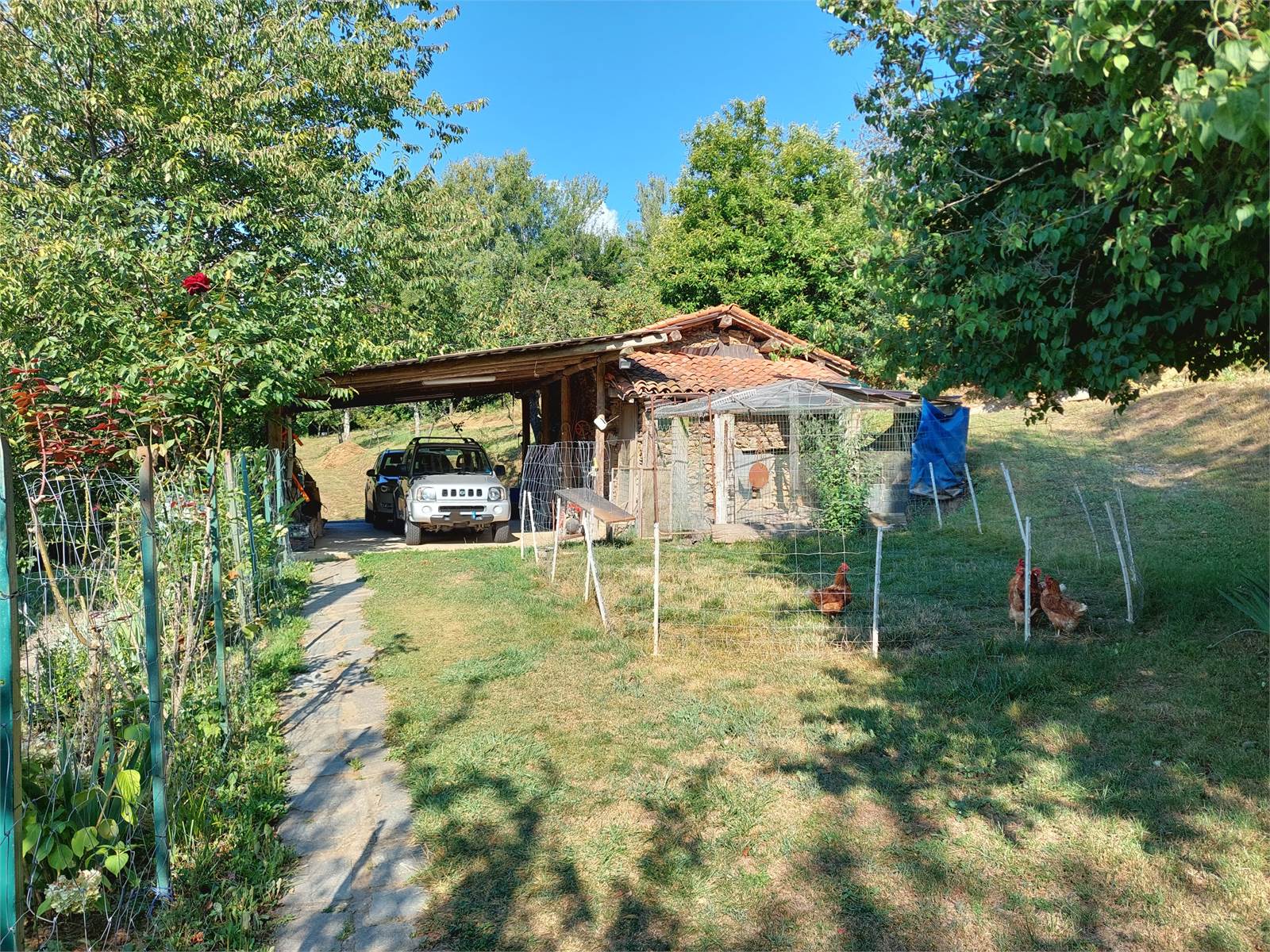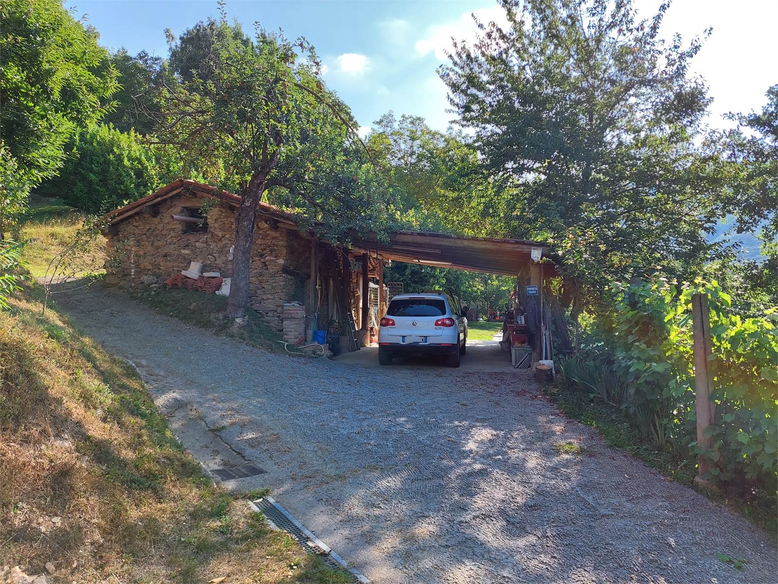 L'abitazione si raggiunge in auto attraverso un viale ad anello che passa all'interno dei terreni di proprietà. E' possibile parcheggiare più macchine al riparo di due tettoie situate ciascuna ai due lati opposti dell'abitazione.