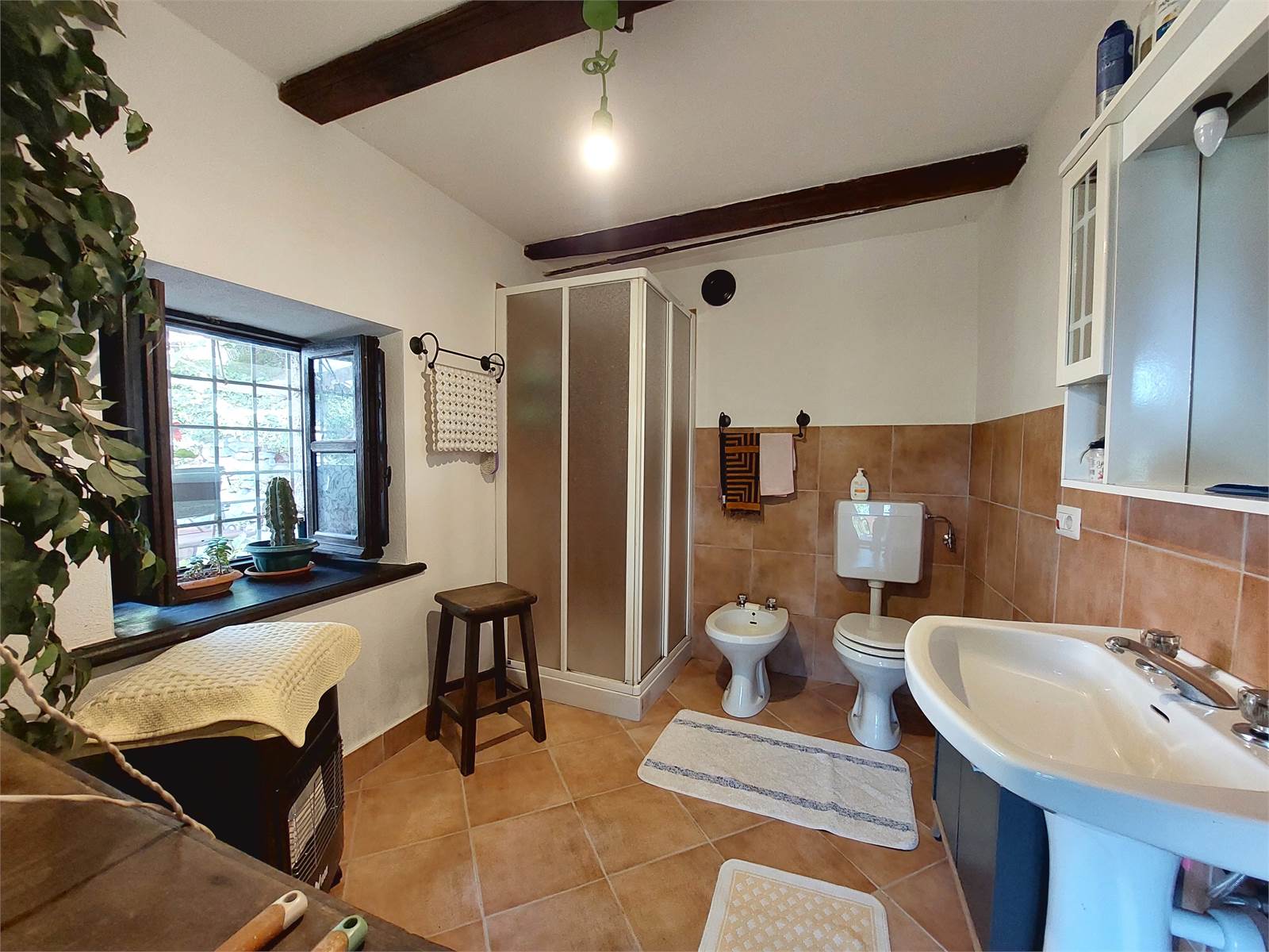 La casa è riscaldata con due stufe a legna e una a pellet ed è anche dotata di impianto di riscaldamento a termosifoni.