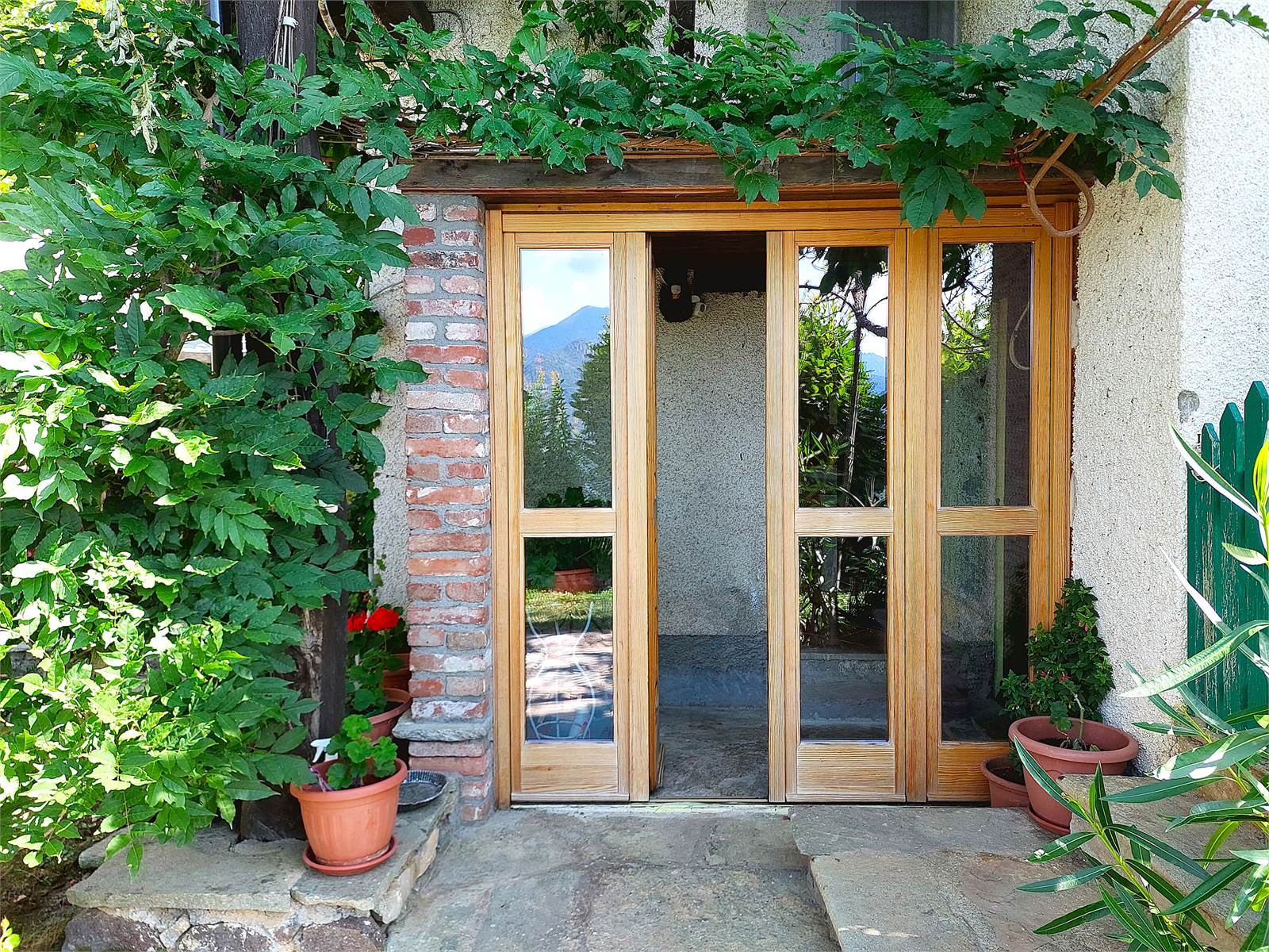 La casa, costruita in pietra, mattoni e legno, è indipendente sui quattro lati ed è disposta su due livelli collegati internamente.