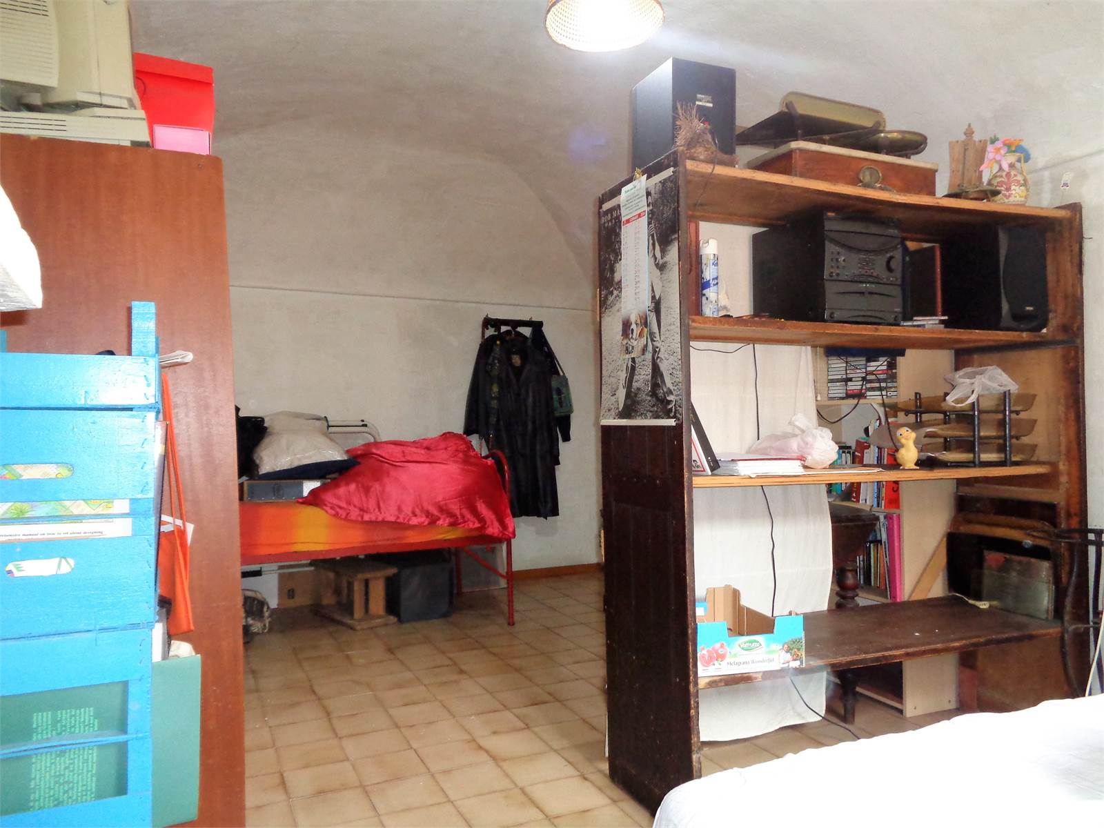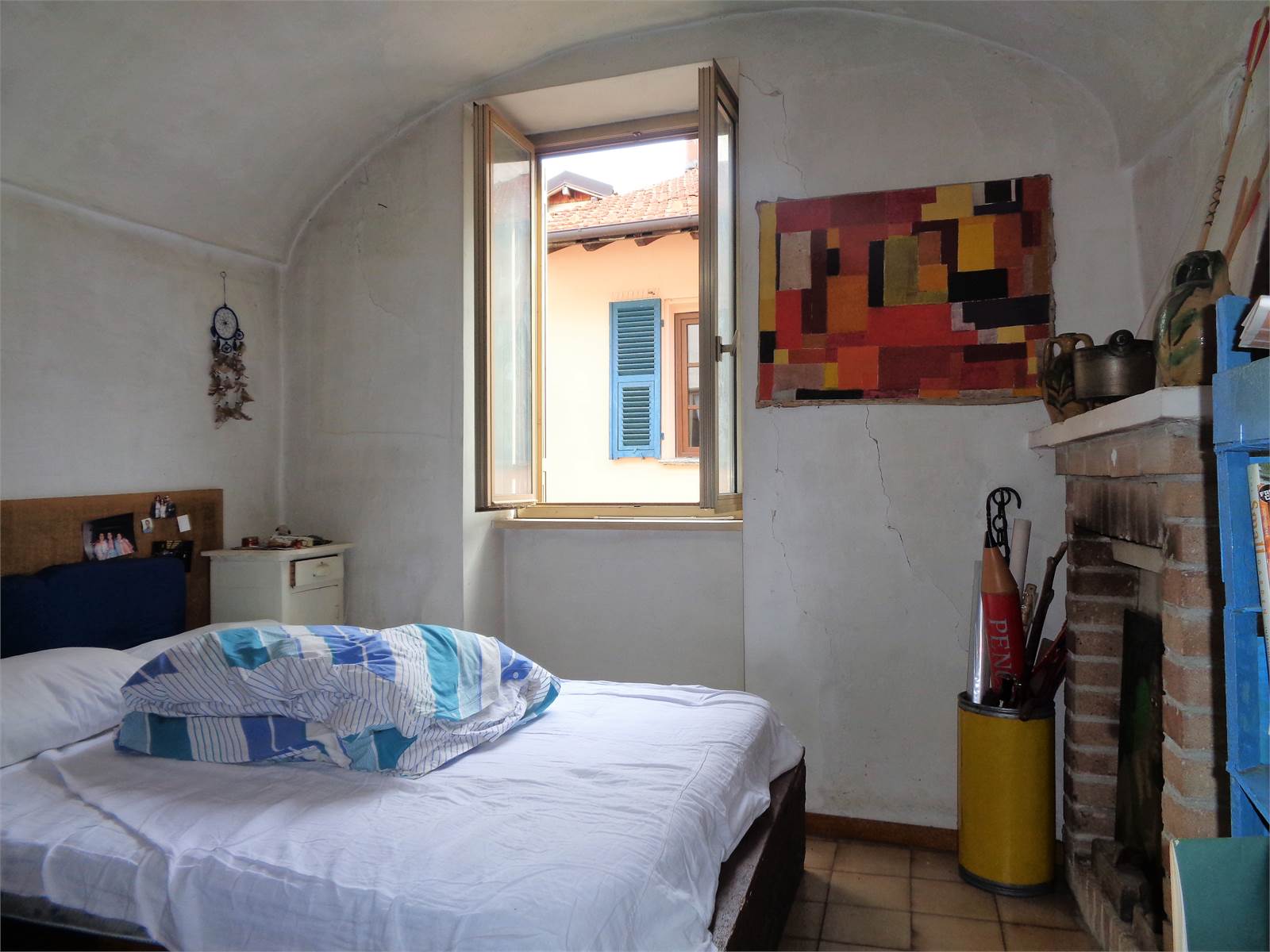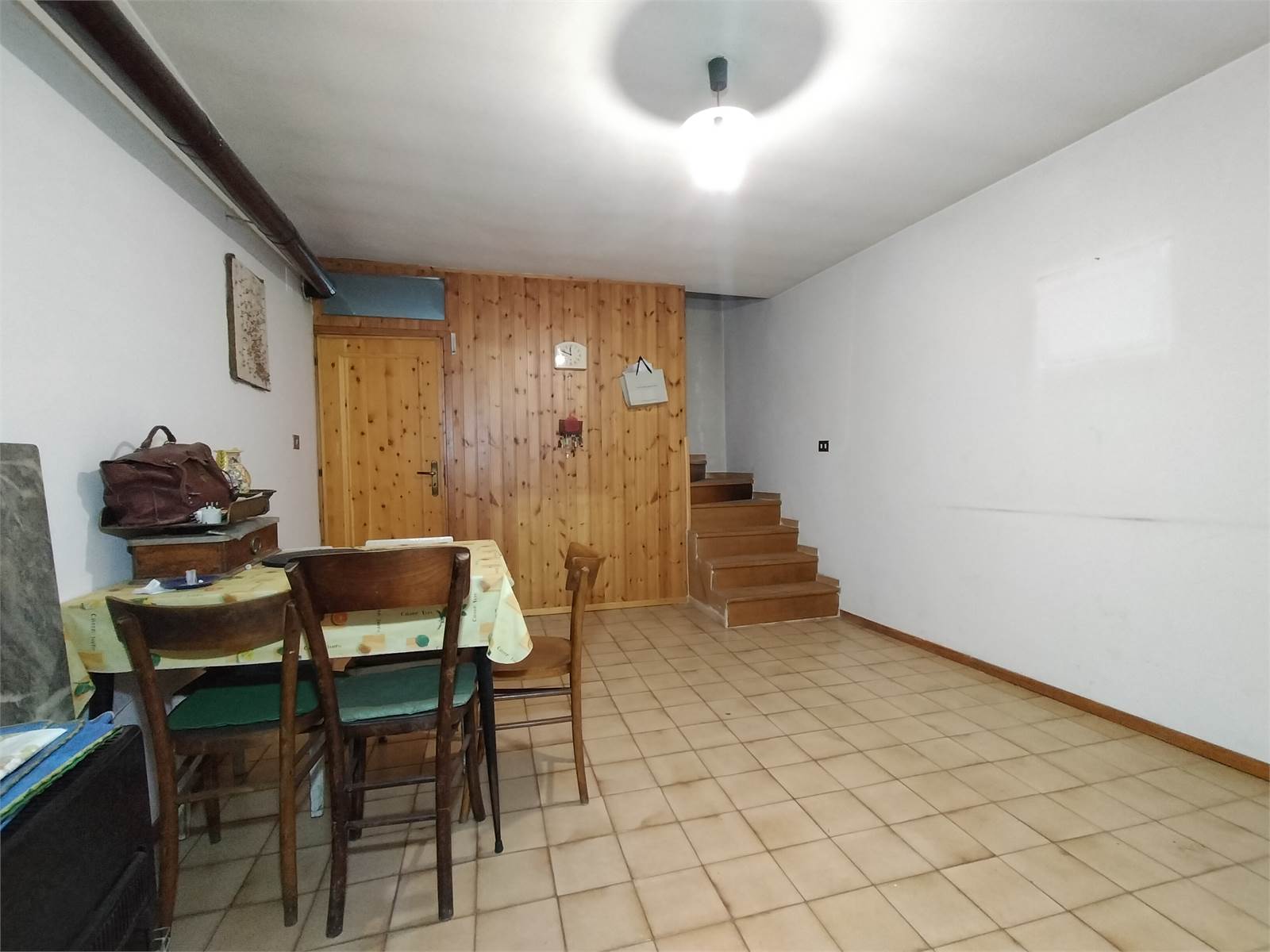 Il secondo piano dello stabile è costituito da un appartamento indipendente completamente da ristrutturare ed internamente suddiviso in cucina con camino, camera e bagno finestrato.
