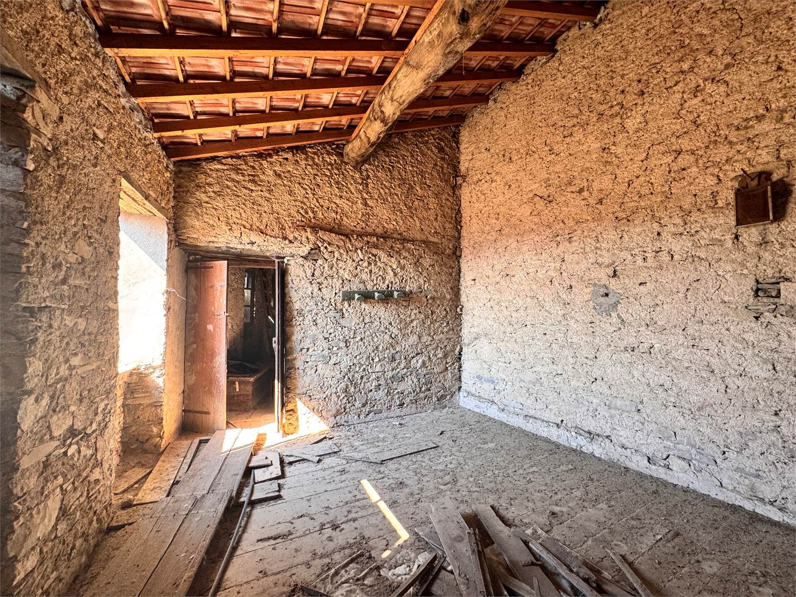 Si tratta di un fabbricato in pietra da ristrutturare completamente, posto al primo piano e disposto su un unico piano di circa 80 metri quadri e suddiviso in 3 stanze con annesso magazzino al piano terra.