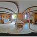 La porta d'ingresso dell'alloggio conduce direttamente nella zona giorno che è costituita da un soggiorno arredato con tavolo da pranzo e divano letto e dall'angolo cottura a vista separato solo da una struttura forata in legno. La zona giorno è dotata di porta finestra con accesso al balcone di proprietà, dal quale si gode di vista sulle vette delle montagne.
