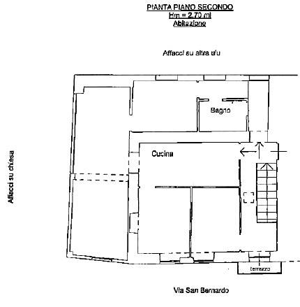 Le scale proseguono al secondo e ultimo piano dello stabile dove si trova il secondo alloggio di proprietà. Quest'ultimo è suddiviso in cucina, soggiorno doppio con veranda, tre camere e bagno.