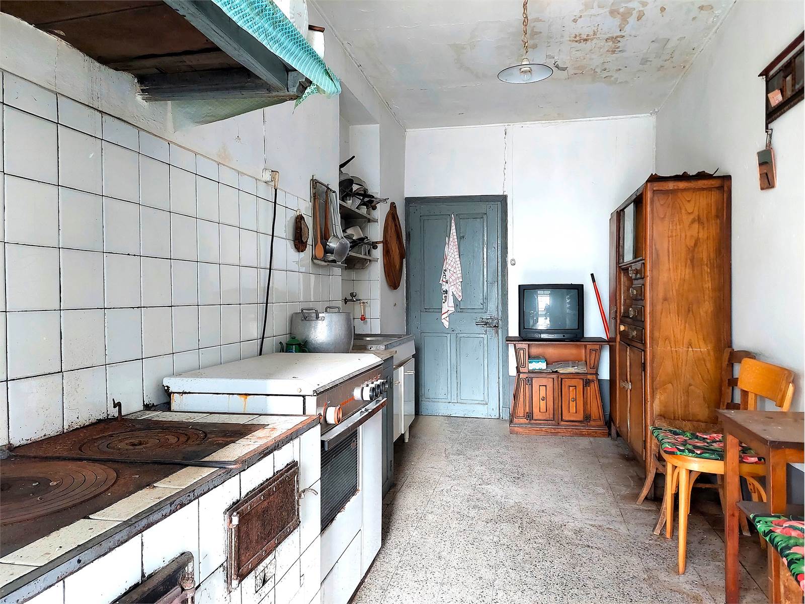 Il vano scale comune conduce al primo piano dove è presente un alloggio facente parte della vendita, che è composto da cucina con camino a legna d'epoca, quattro camere con destinazione abitativa, un bagno cieco ed un vano uso deposito.