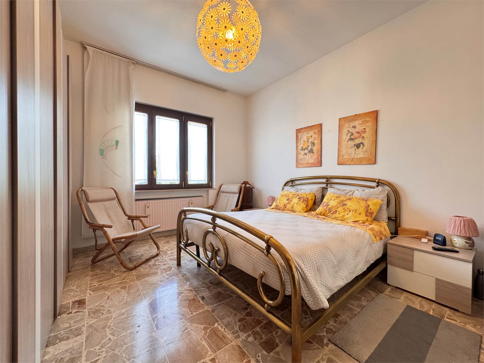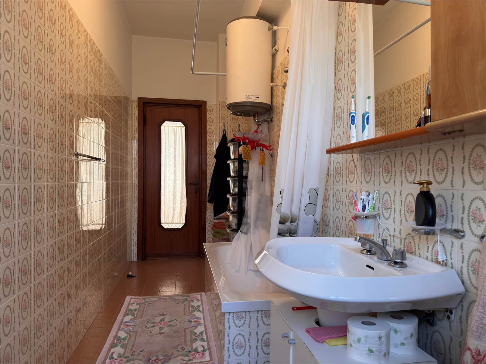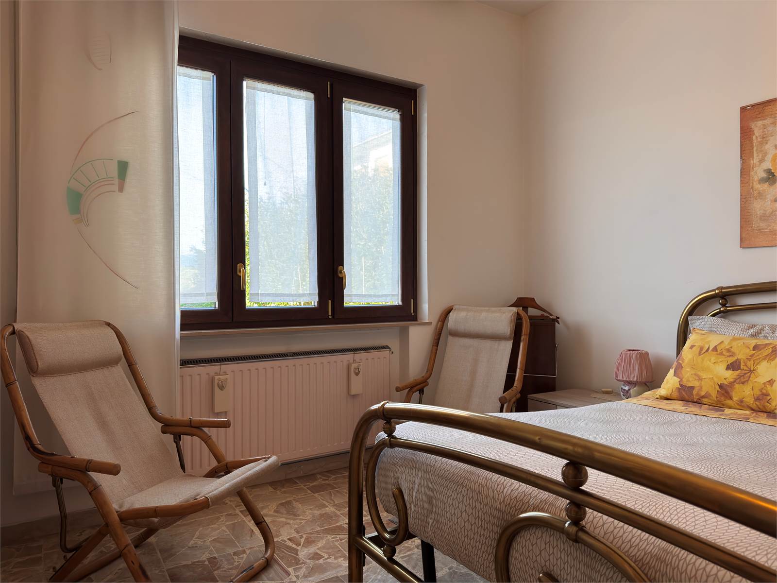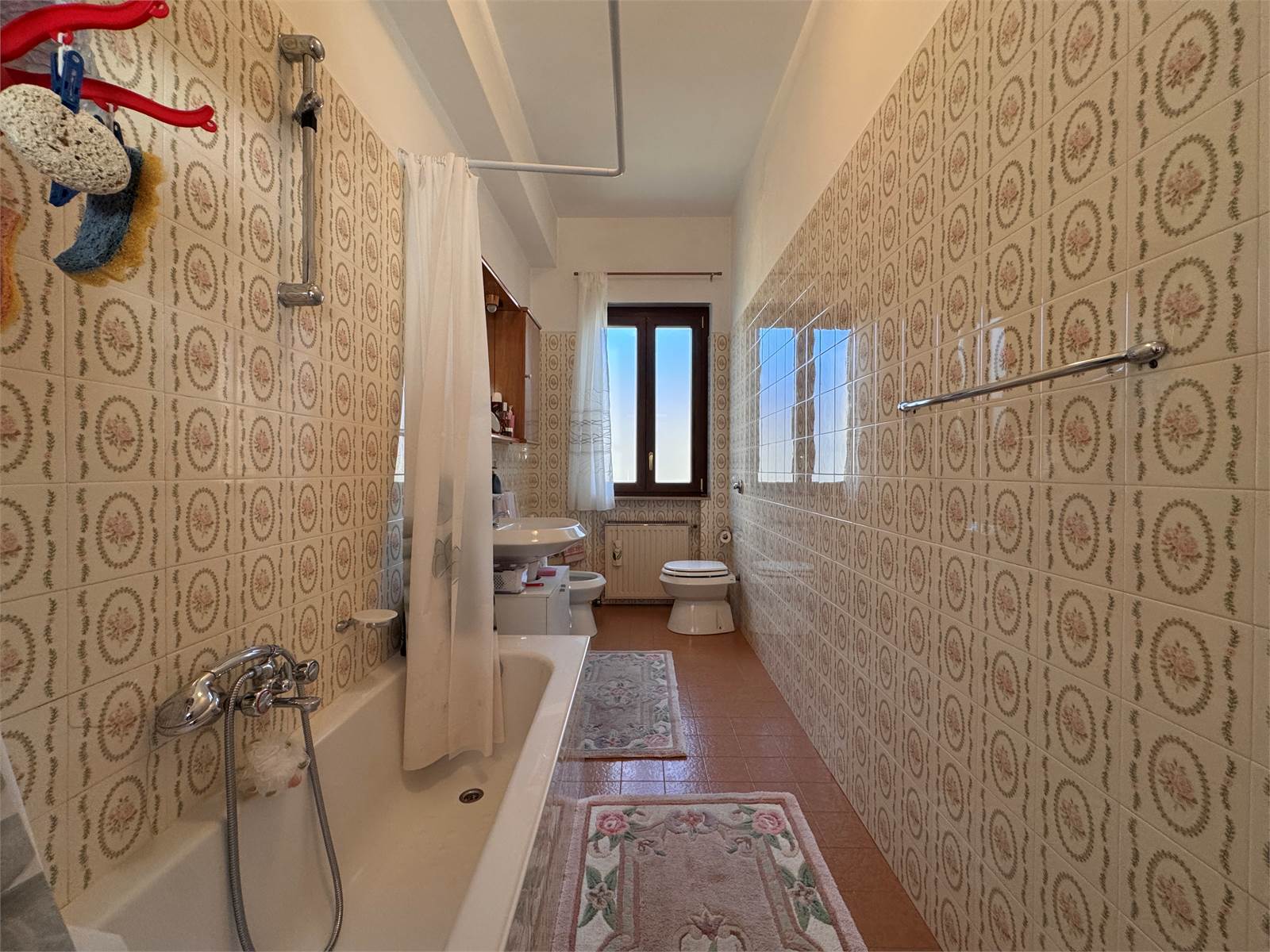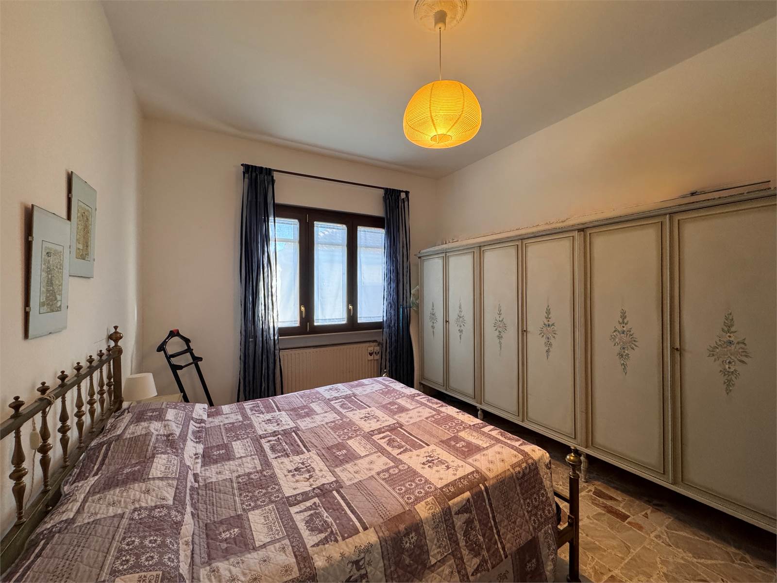 L’accesso principale avviene dalla scala esterna che conduce al terrazzo con vista aperta sulla valle. L’ingresso si apre su un corridoio che funge da disimpegno per tutti gli ambienti del piano superiore, dove si trovano due camere da letto matrimoniali, un ampio soggiorno con accesso al terrazzo, una cucina abitabile anch’essa con uscita sul terrazzo e un bagno finestrato dotato di vasca. Nel corridoio è presente un ripostiglio dal quale si accede alla scala interna che conduce al piano terra.