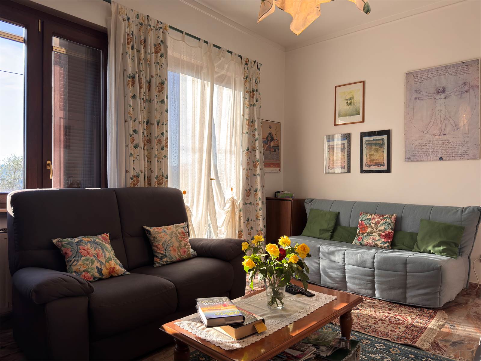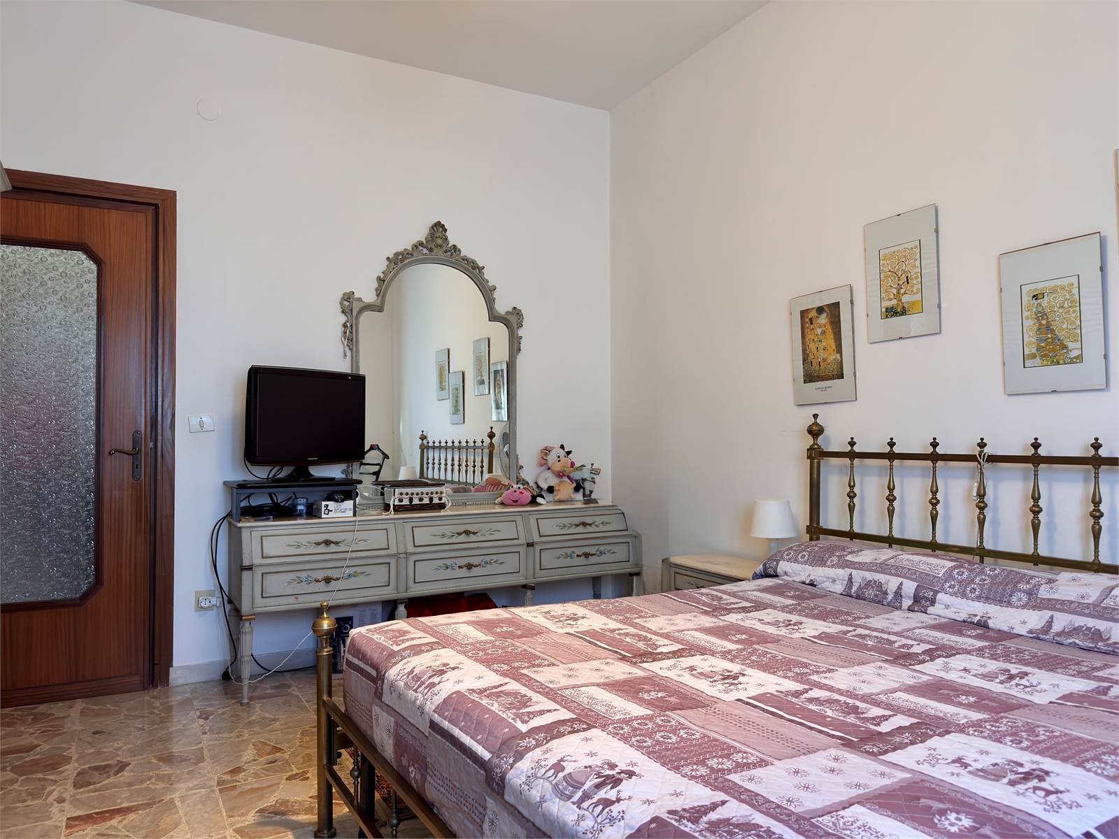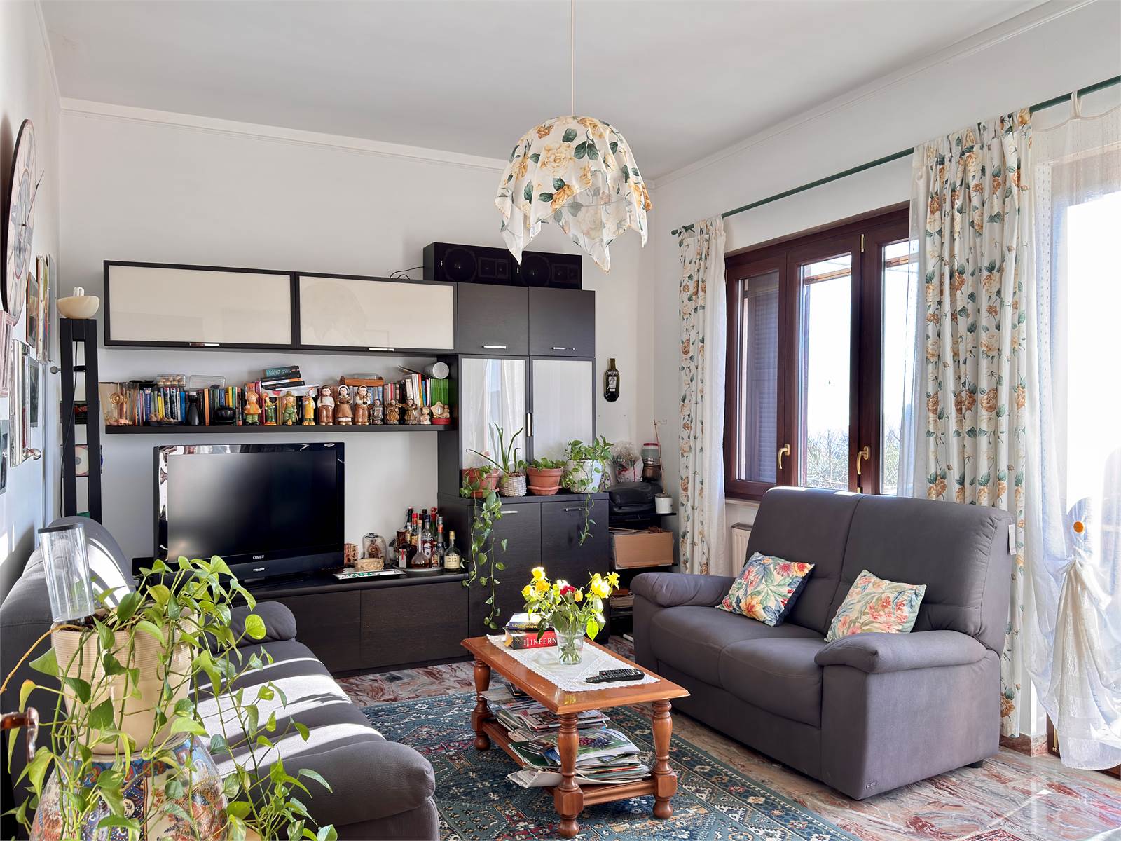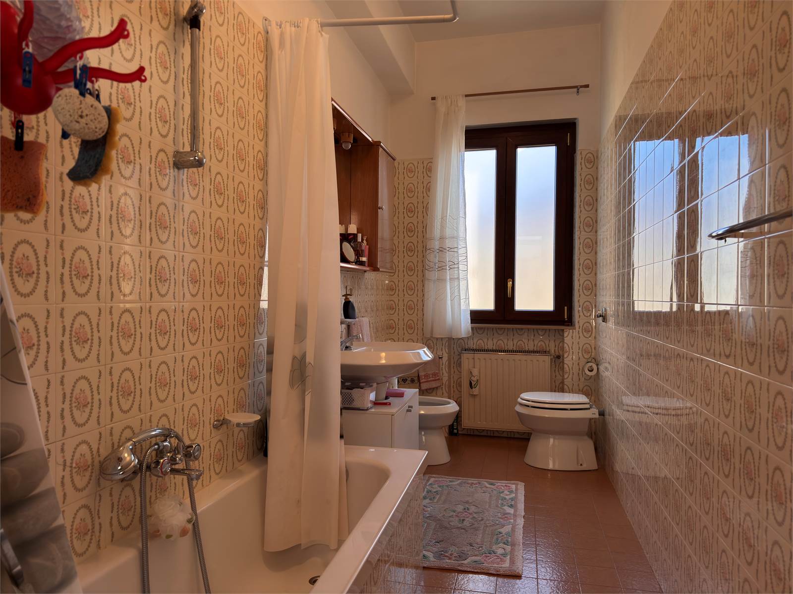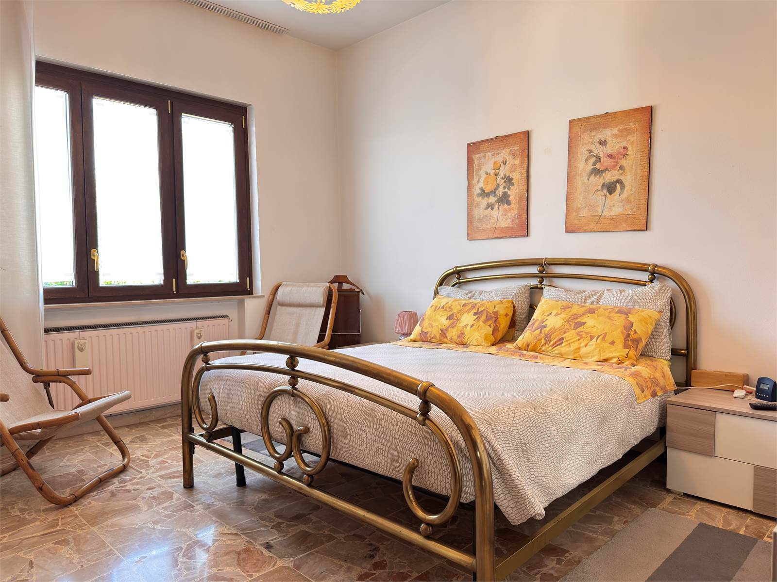L’accesso principale avviene dalla scala esterna che conduce al terrazzo con vista aperta sulla valle. L’ingresso si apre su un corridoio che funge da disimpegno per tutti gli ambienti del piano superiore, dove si trovano due camere da letto matrimoniali, un ampio soggiorno con accesso al terrazzo, una cucina abitabile anch’essa con uscita sul terrazzo e un bagno finestrato dotato di vasca. Nel corridoio è presente un ripostiglio dal quale si accede alla scala interna che conduce al piano terra.