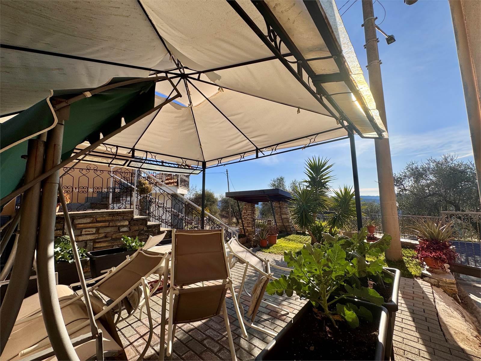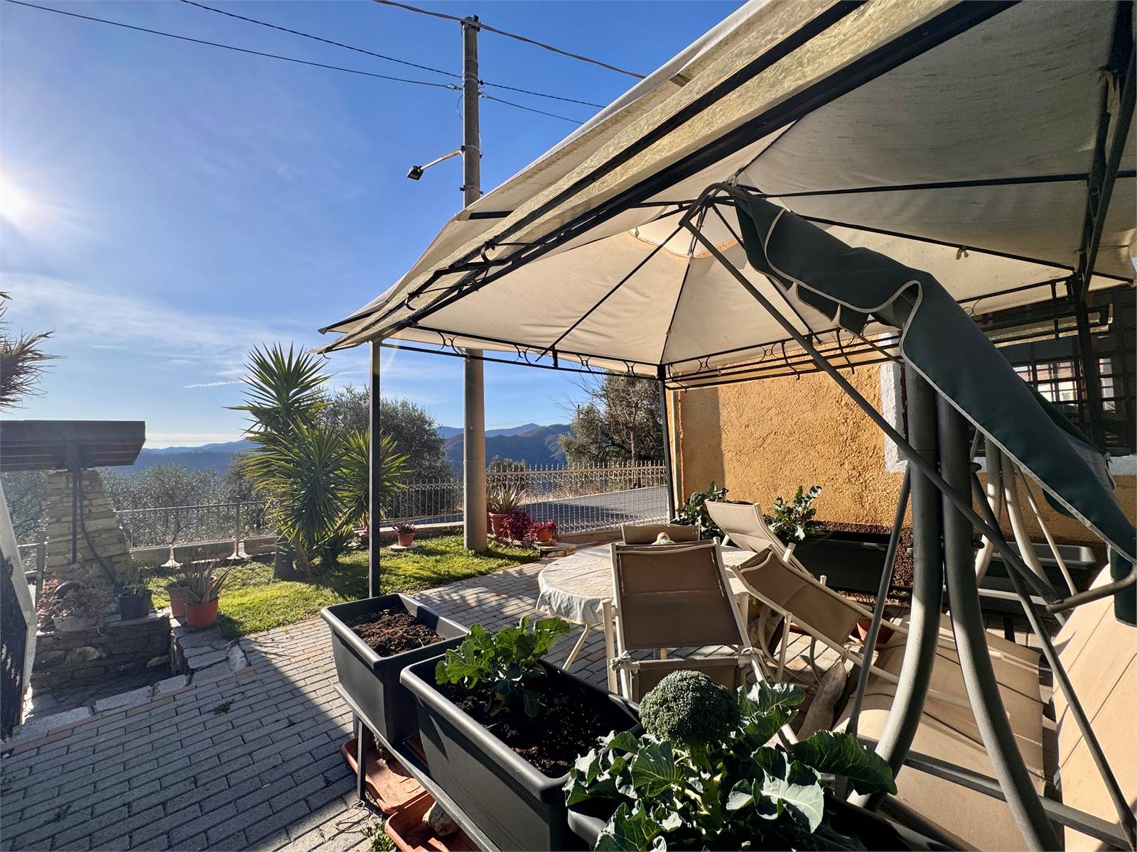 La proprietà si trova nel paese di Onzo, in provincia di Savona, comune dell’entroterra ligure di Albenga, situato in posizione soleggiata e panoramica a circa 400 metri di altitudine. Il paese è dotato dei servizi essenziali, tra cui ufficio postale, bar, alimentari e piccoli esercizi commerciali, e dista circa 18 chilometri da Albenga.
