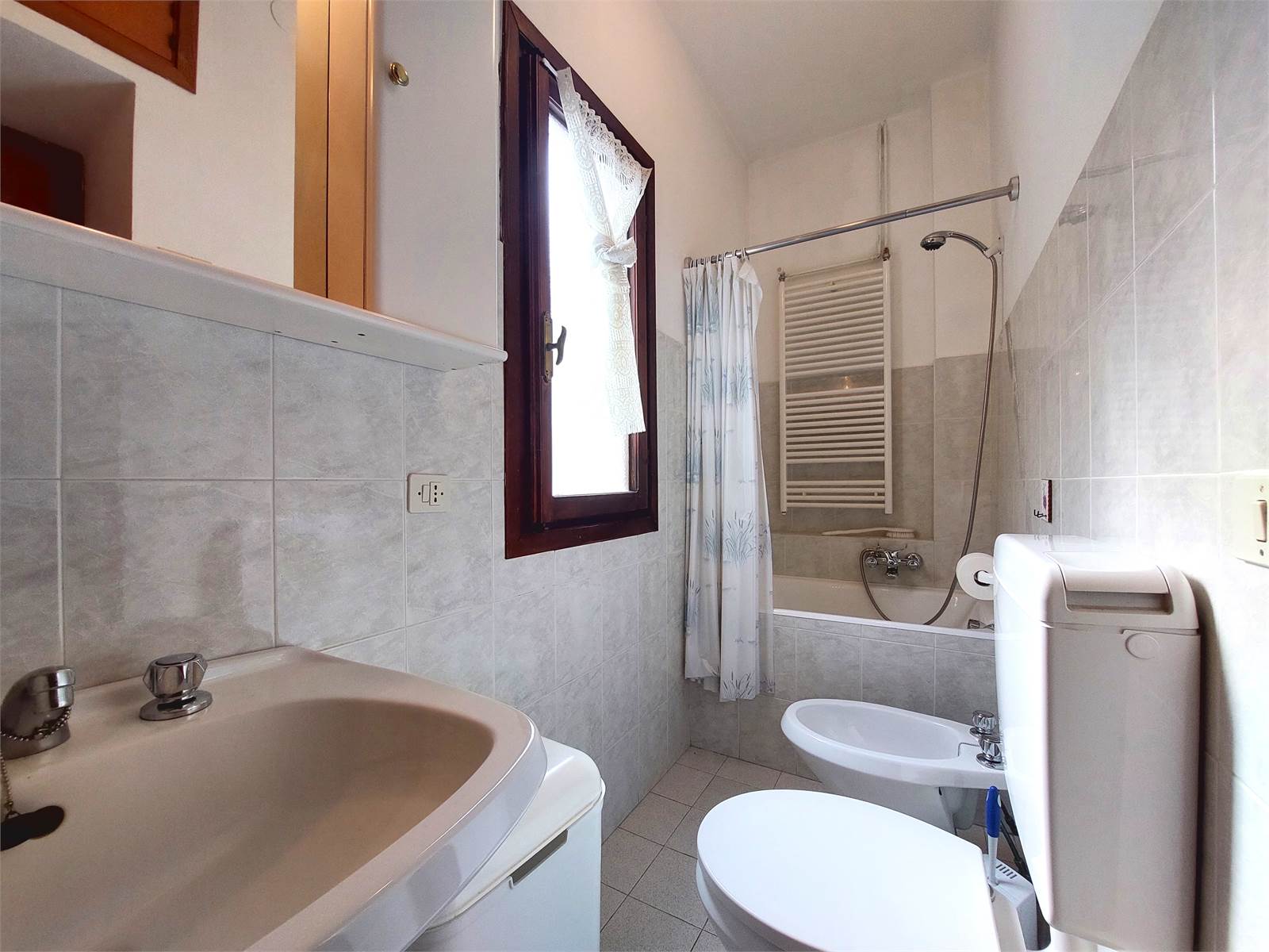 Al di là del pianerottolo comune è presente il secondo alloggio oggetto della vendita, il quale è indipendente rispetto al precedente, anche se le due cucine possono essere rese comunicanti aprendo una porta nel muro che le separa. Questo appartamento è strutturato da una cucina abitabile con balcone, una camera da letto matrimoniale anch'essa con balcone e da un bagno con finestra e vasca.