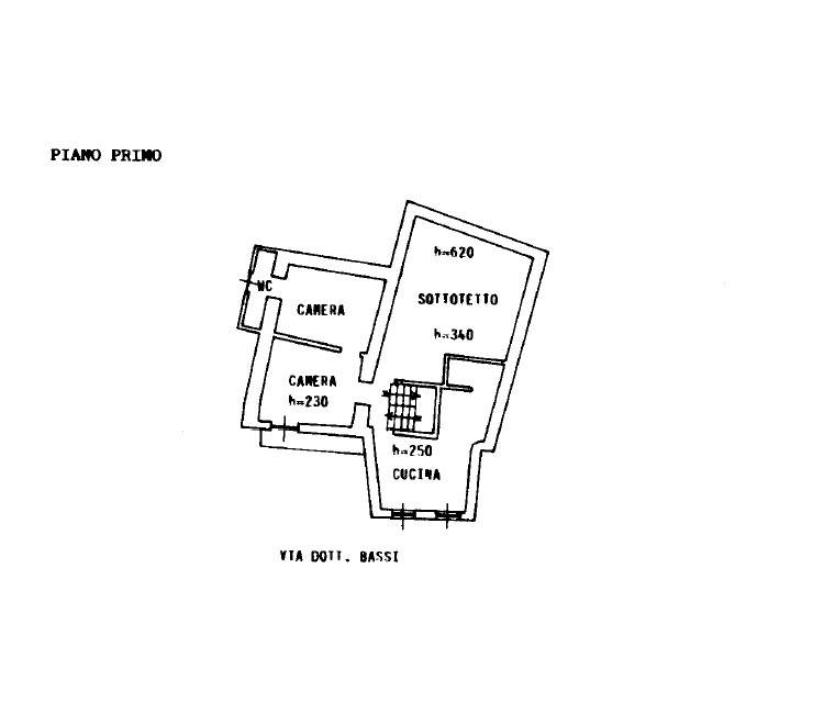 Attraverso la scala interna si sale al primo piano dove si sviluppa l'alloggio che proponiamo in vendita, composto da quattro locali separati dal vano scale.