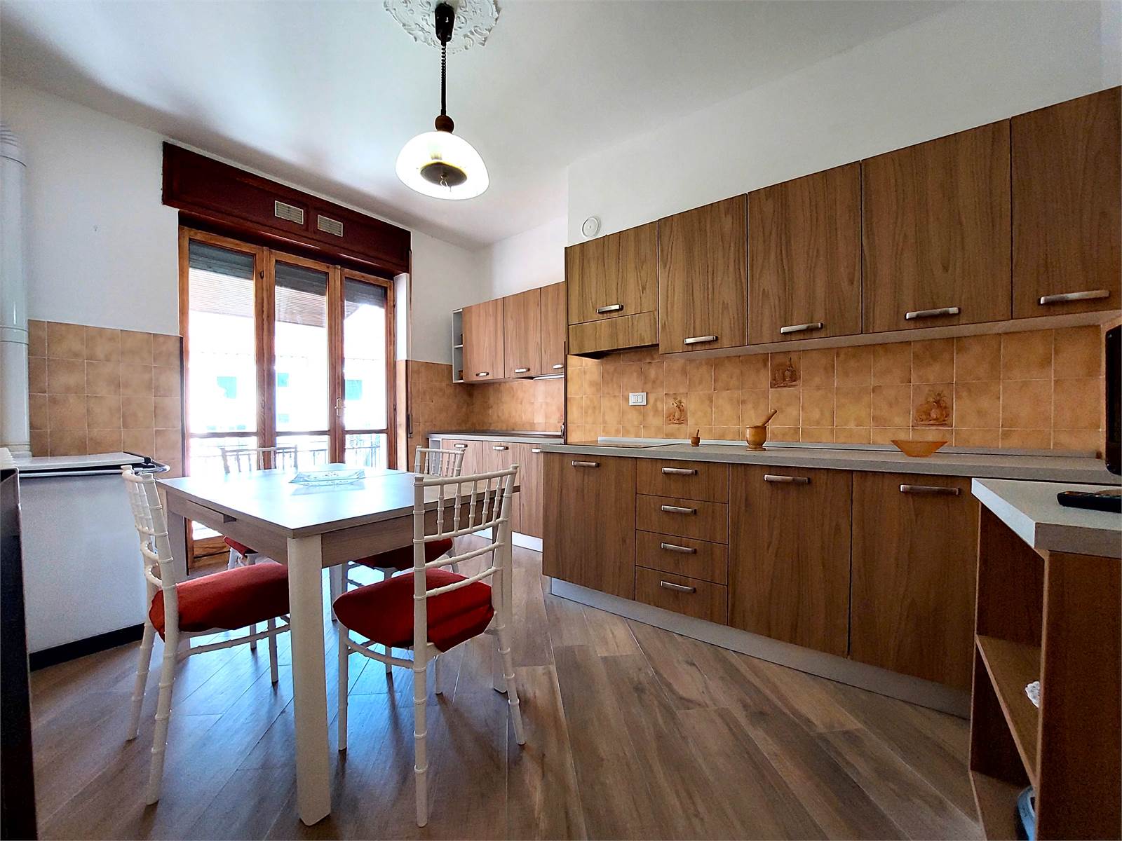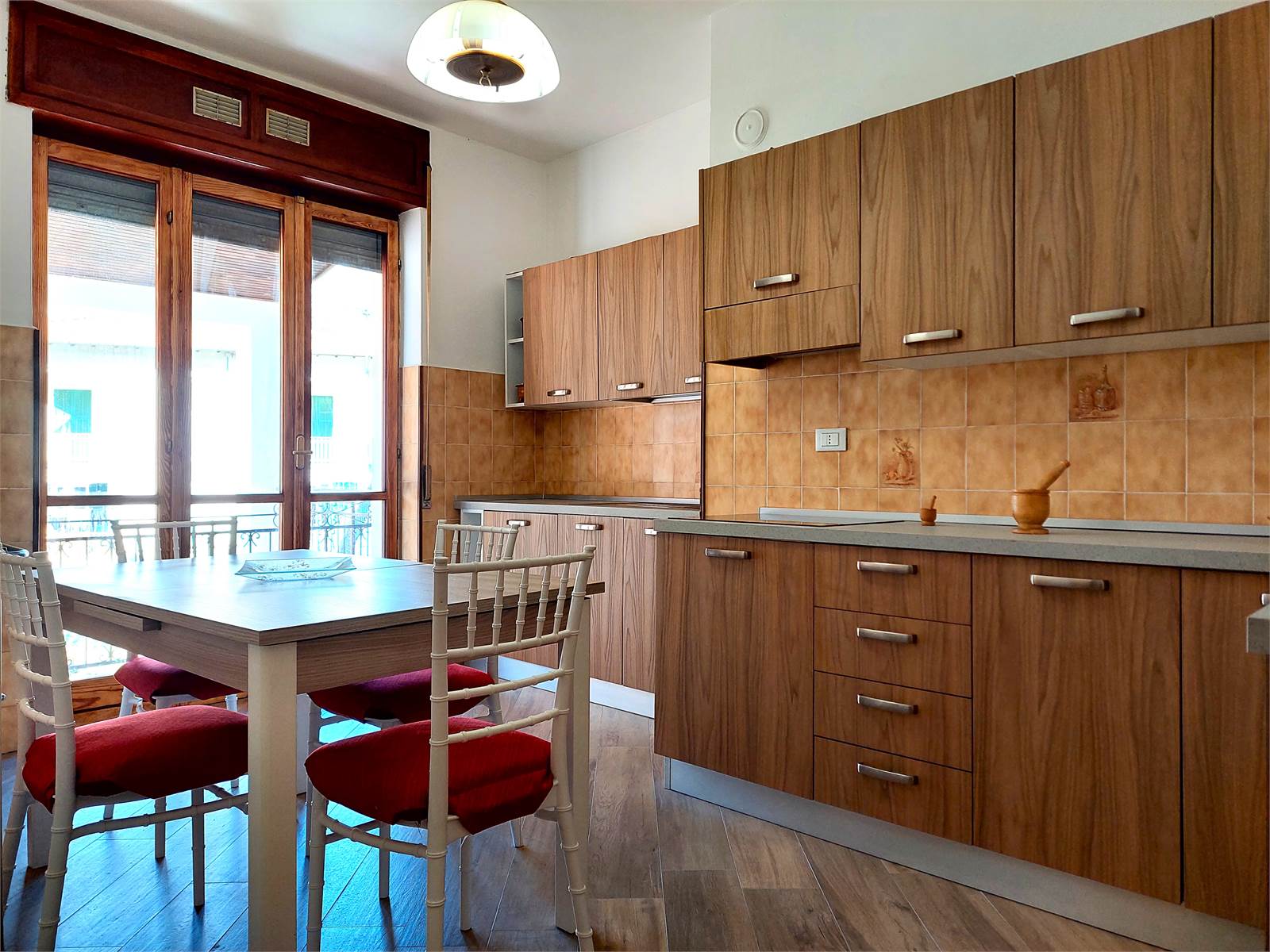 Nell'appartamento è presente un soggiorno reso luminoso grazie alla porta finestra esposta a sud con accesso ad un balcone panoramico che si estende per tutta la larghezza della facciata della casa.