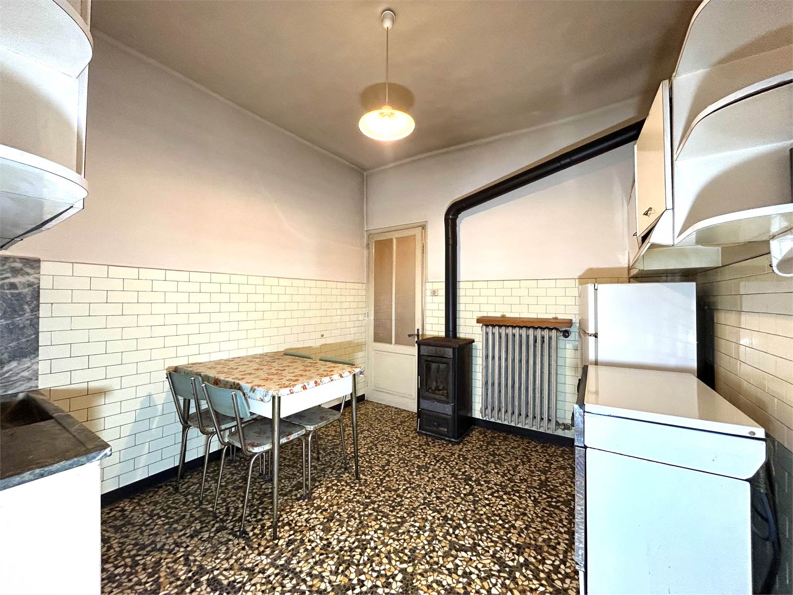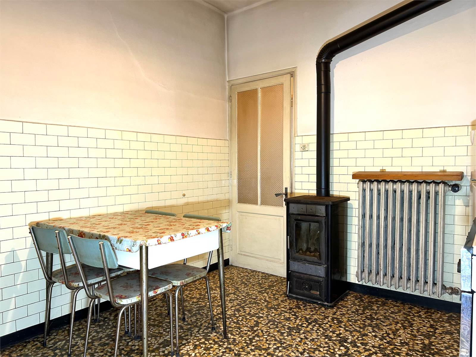 La cucina abitabile è dotata di stufa a legna ed ha la particolarità di avere un lavandino in marmo antico.