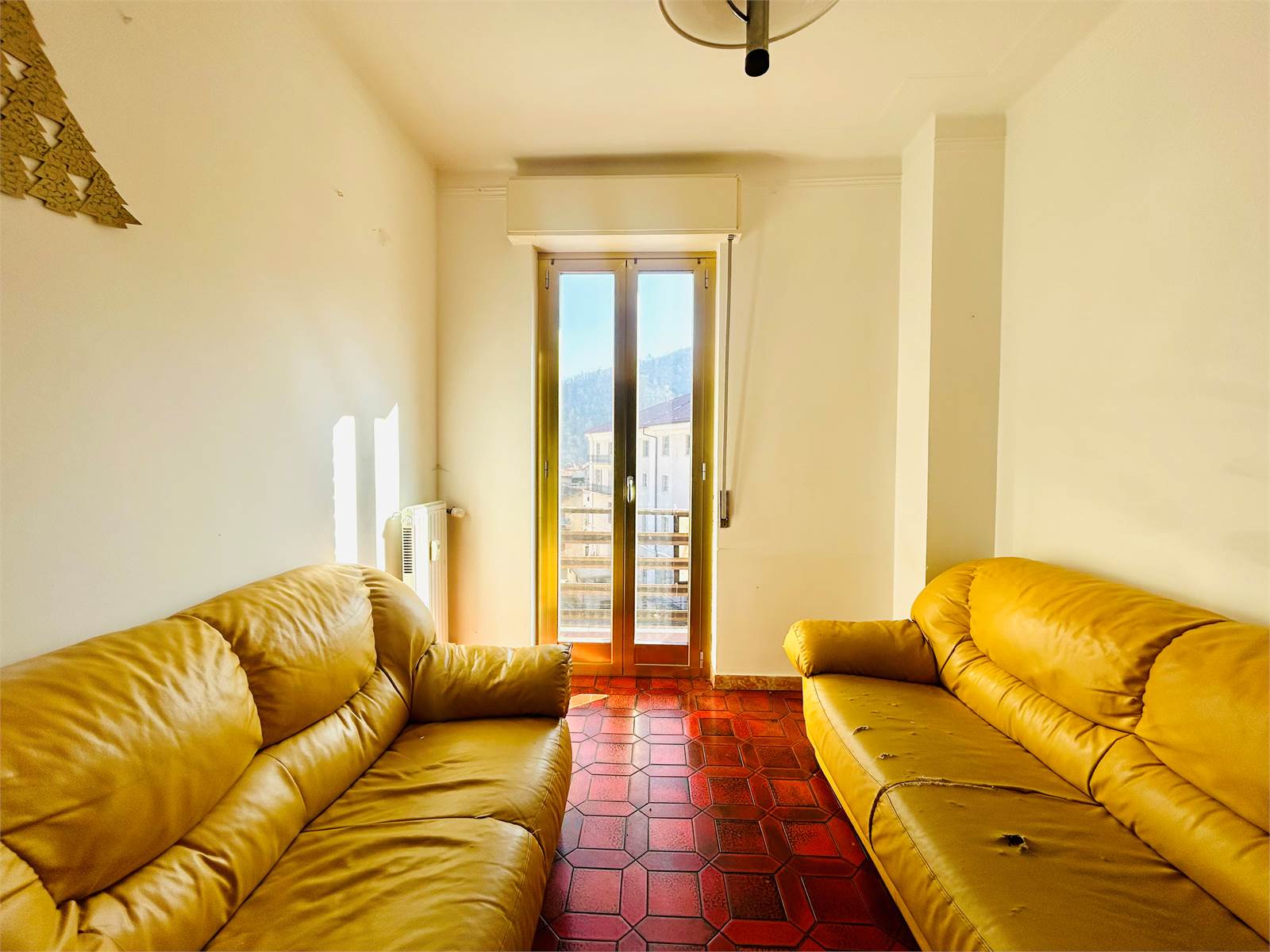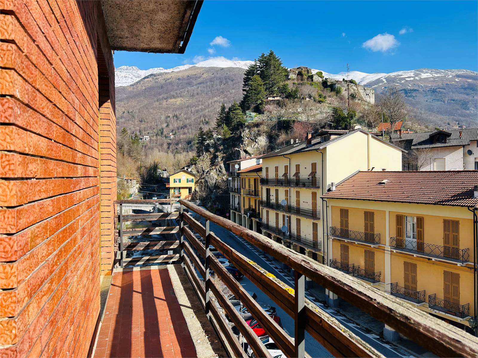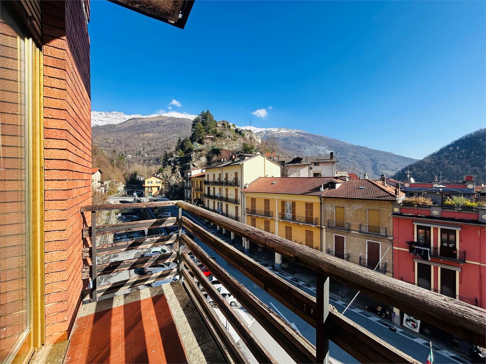 Un vano è sfruttato come salotto ed è dotato di una portafinestra che per mette di accedere al un balcone. Quest'ultimo si estende per l'intera larghezza dell'alloggio e da esso la vista spazia dai tetti del centro di Ormea fino alle montagne circostanti.