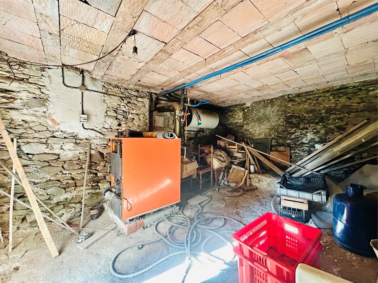 Il seminterrato dell'abitazione misura circa 70 metri ed è suddiviso in tre ampi magazzini, di cui uno con il soffitto a volta in pietra e uno adibito a locale caldaia, che ospita appunto la caldaia a legna collegata ai termosifoni presenti in tutta la casa. C'è anche un boiler per l'acqua calda sanitaria.