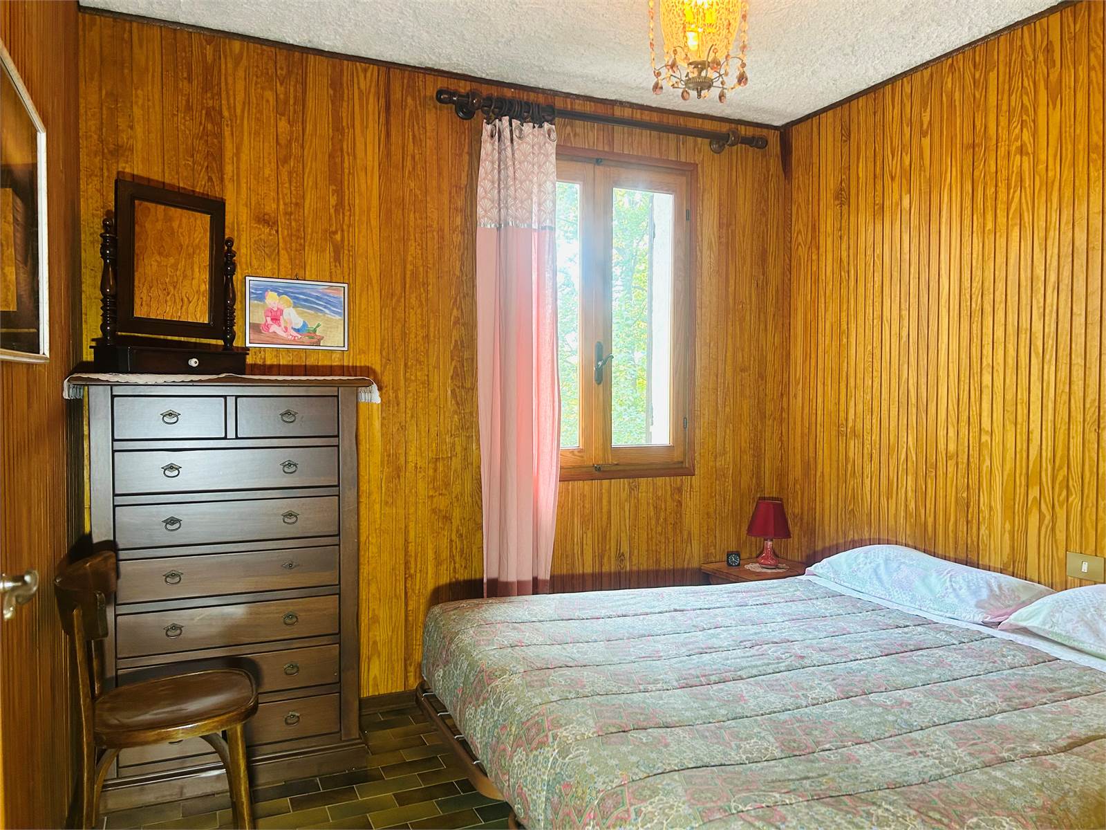 Un piccolo disimpegno con stufa a legna divide le quattro camere da letto che compongono la zona notte. Essa ha la caratteristica di essere interamente rivestita di perline in legno per rendere gli ambienti caldi e accoglienti.