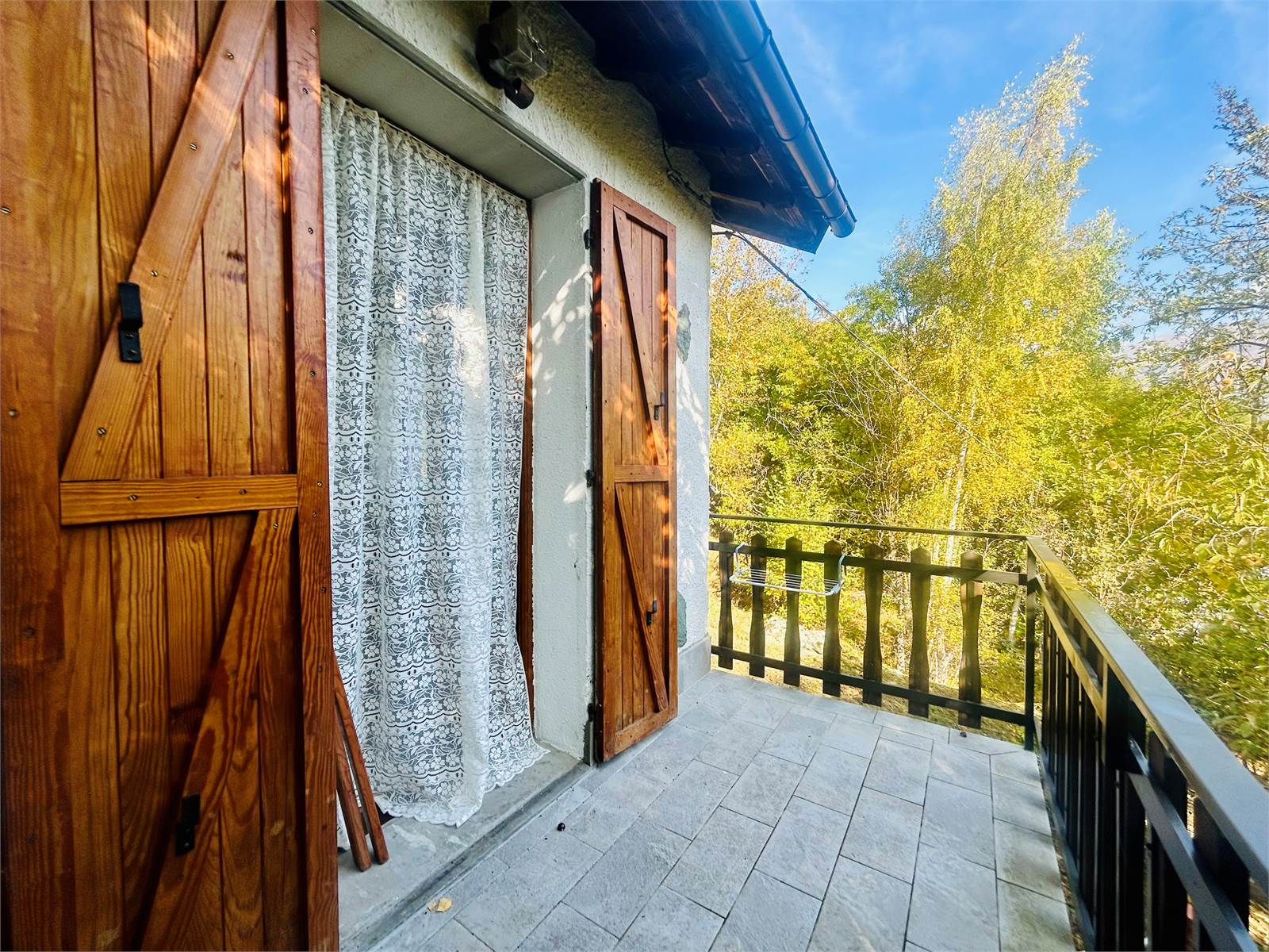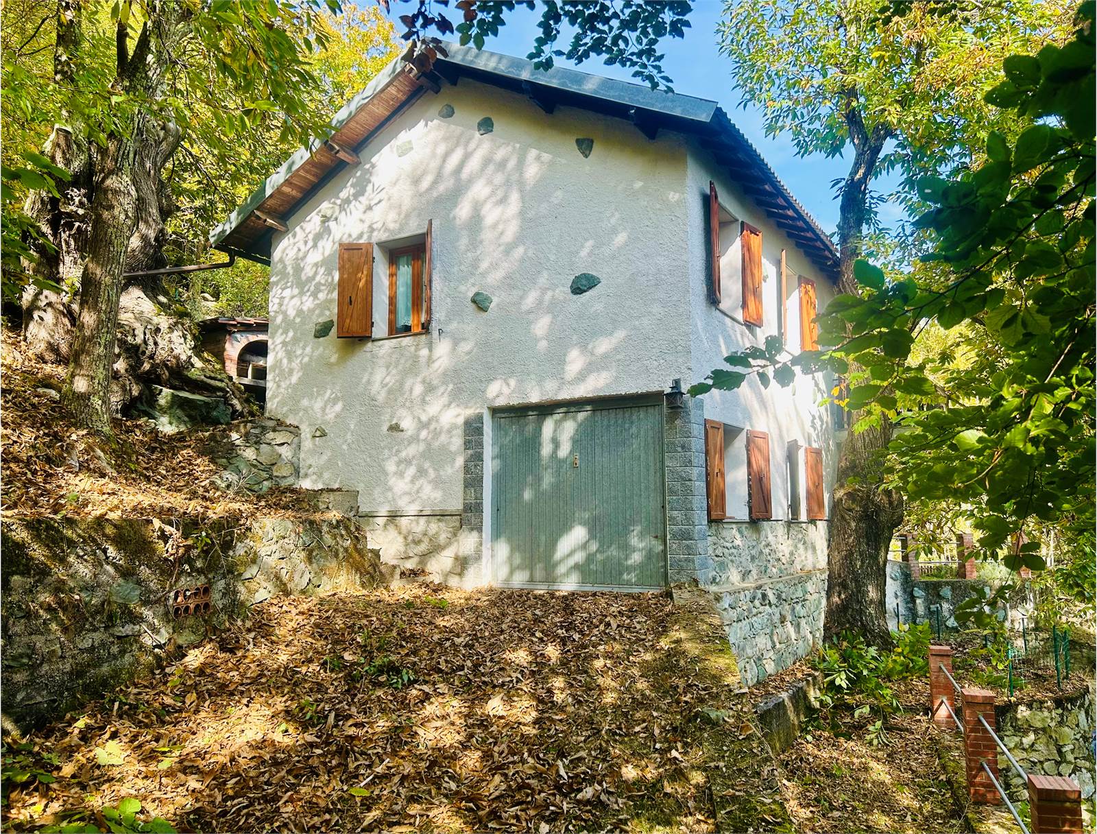 L'accesso al giardino è tramite un cancelletto coperto che introduce la scala in pietra esterna fino all'ingresso dell'abitazione, situato su un terrazzino loggiato.