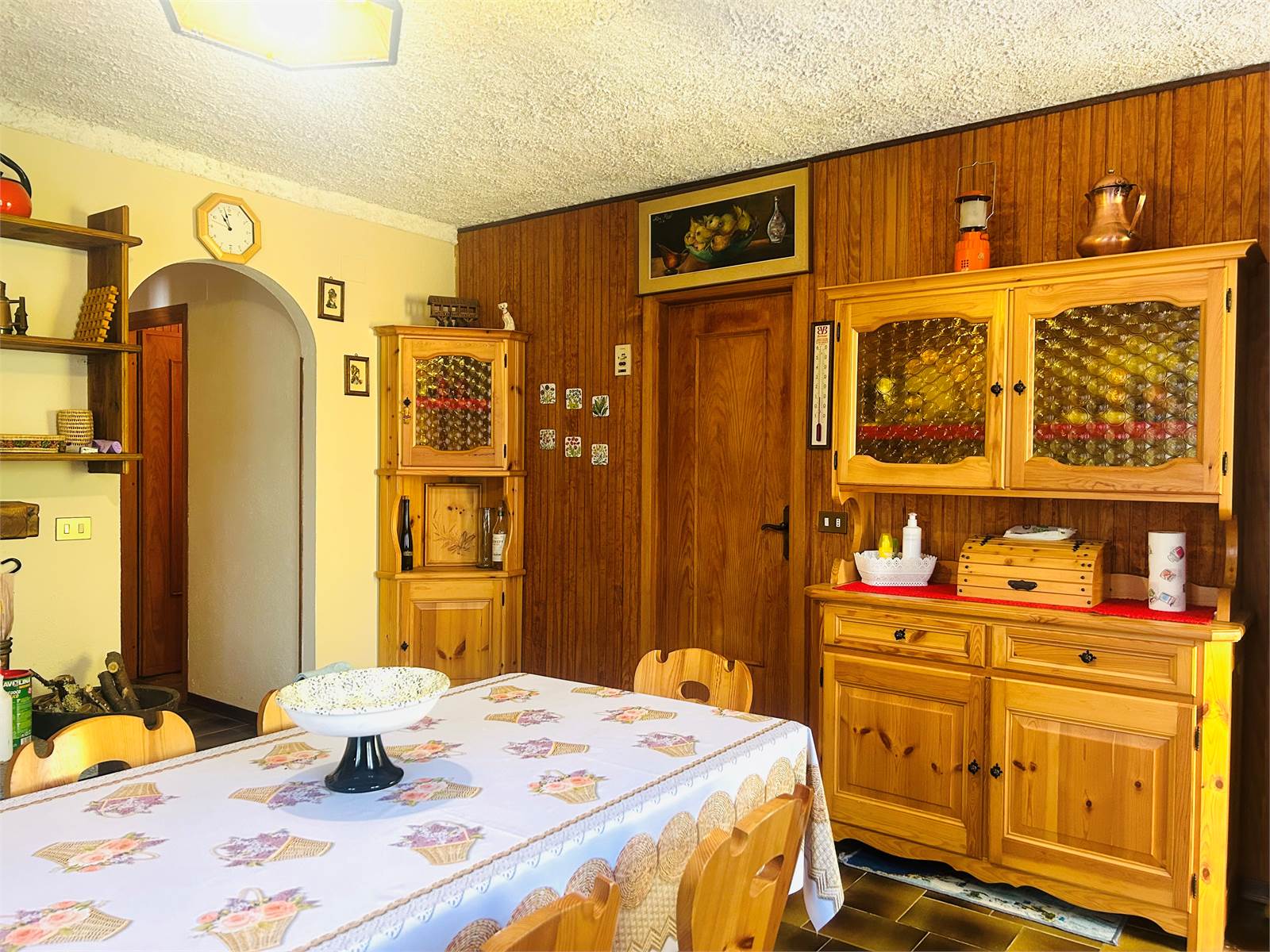 La zona giorno è il primo ambiente che si incontra. Spaziosa e luminosa, ospita al suo interno l'angolo cottura e il camino a legna in muratura. Grazie alla portafinestra si esce sul terrazzo abitabile con vista sui castagni circostanti.