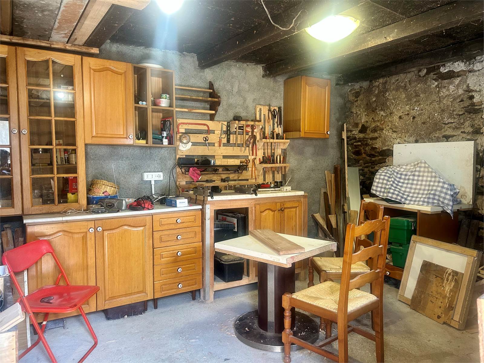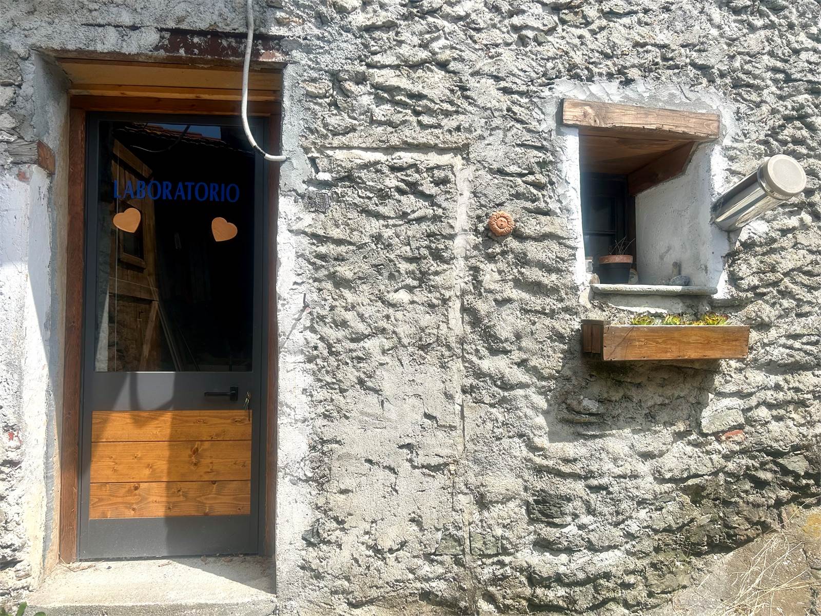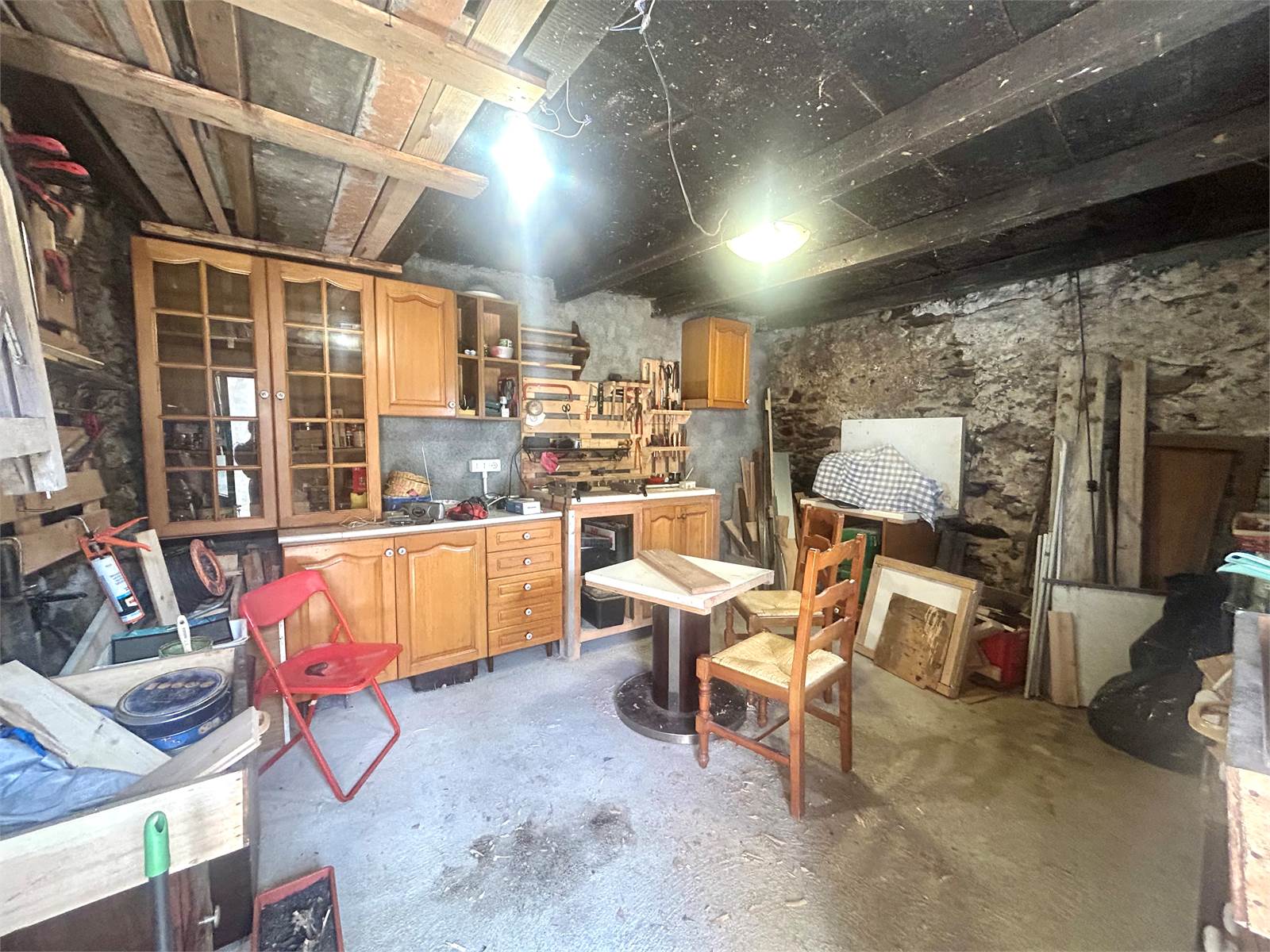 Dal medesimo cortile si accede ad un rustico in pietra disposto su due livelli, per metà adibito a laboratorio, che infatti misura circa 20 mq ( servito di luce e acqua ) e per metà come magazzino.