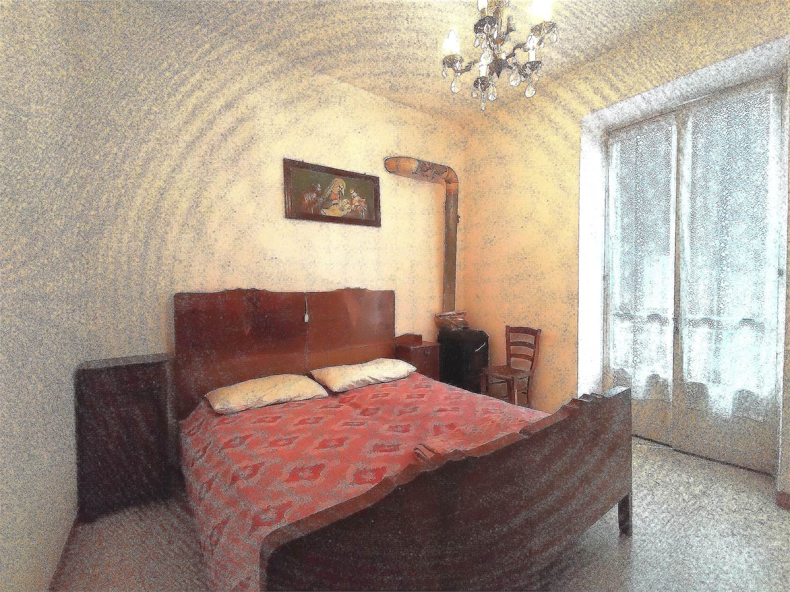 Il secondo piano dello stabile è costituito da un appartamento suddiviso in soggiorno, cucina con stufa a legna, due camere matrimoniali comunicanti e bagno finestrato a cui si accede direttamente dalla zona notte.