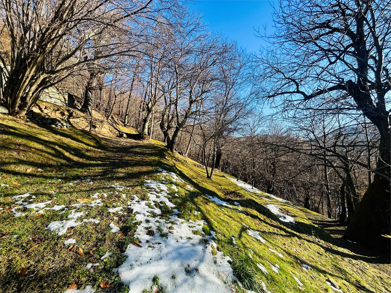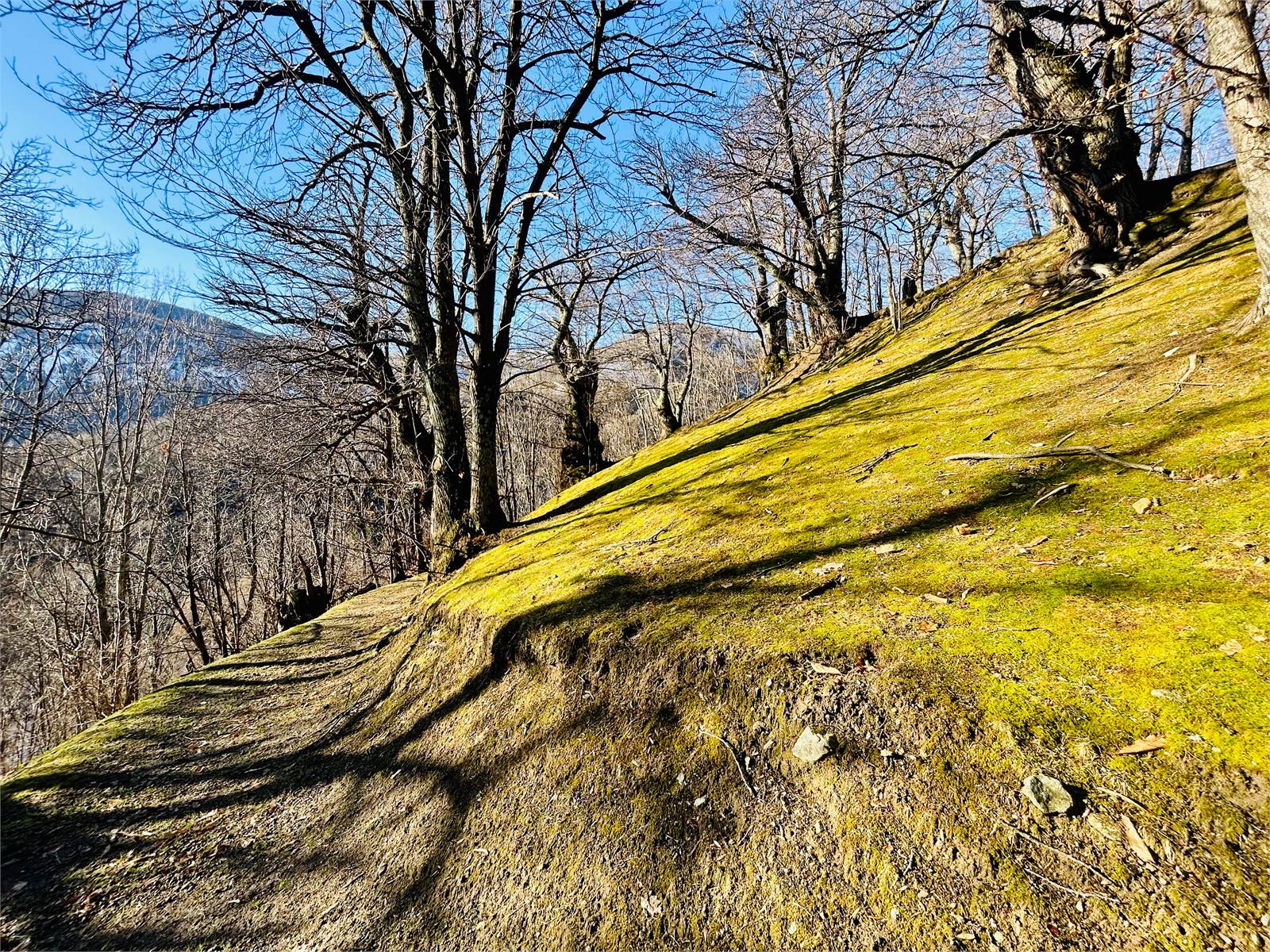 La parte forte di questa proprietà è il terreno che la circonda. Più di due ettari principalmente in discesa adibiti per metà a castagneto e per l'altra metà a bosco di frassini.