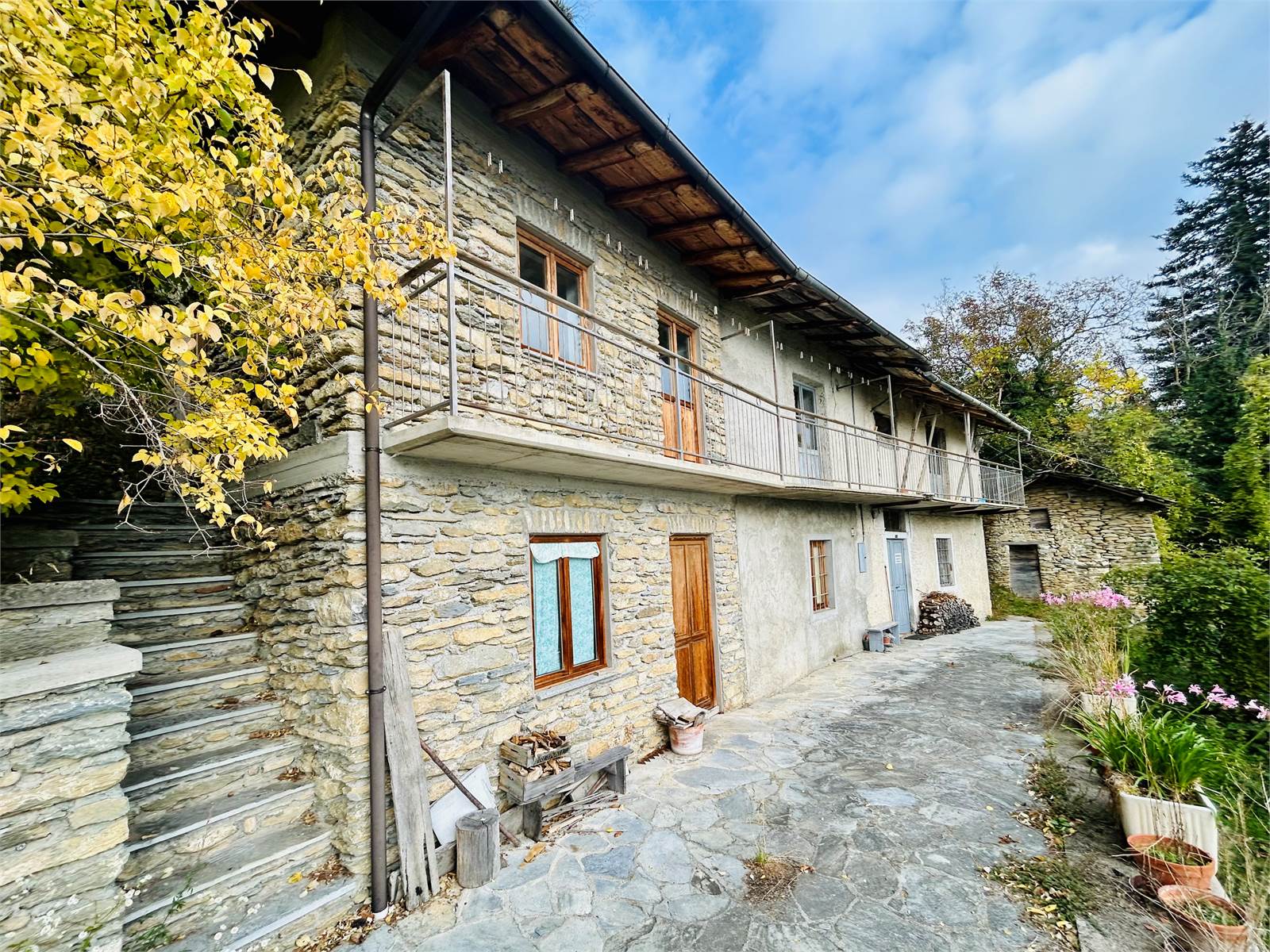 Dal cortile pertinenziale di circa 50 metri, con una vista aperta su tutta la vallata di Ormea e le sue montagne circostanti, si accede alla casa libera su quattro lati la cui particolarità è di avere ben quattro ingressi indipendenti.
