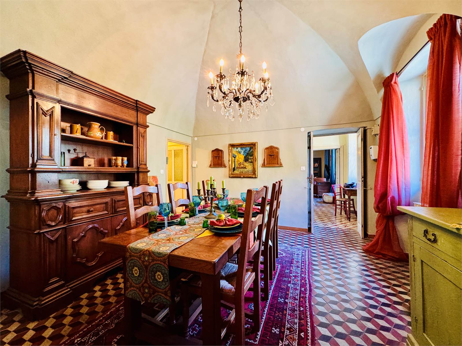 Proseguendo si raggiunge il primo piano, composto da due spaziose camere da letto matrimoniali, un ampio bagno con vasca e aspirazione forzata, una sala da pranzo con affascinanti soffitti a volta e pavimenti originali in ottimo stato, una cucina separata e una comoda zona soggiorno/relax, gli ambienti risultano tutti luminosi e ariosi grazie alla doppia esposizione e le molte finestre.