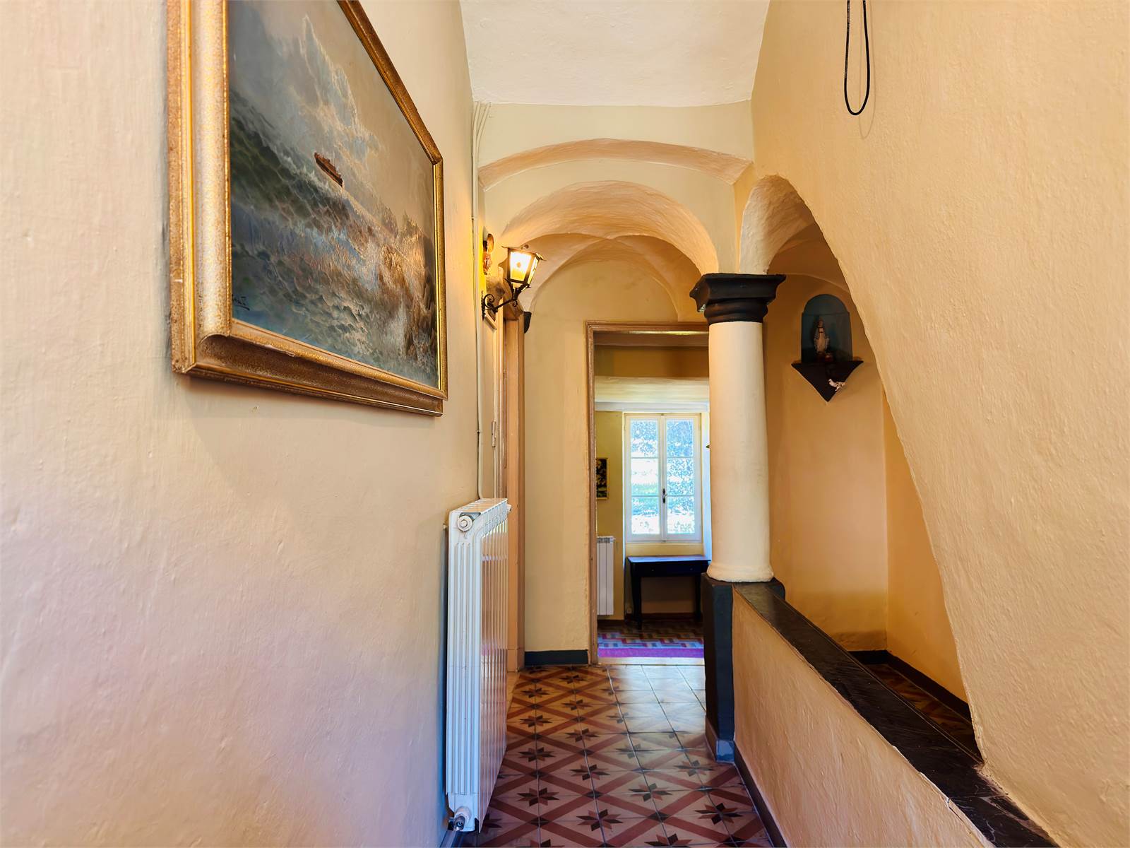 Tra le caratteristiche distintive della casa troviamo: pavimenti d’epoca ben conservati, soffitti a volta e colonne architettoniche che donano un autentico fascino storico percepibile in ogni ambiente. Il tetto si presenta in ottime condizioni, con travetti e tegole sostituiti di recente, anche se privo di isolamento termico.