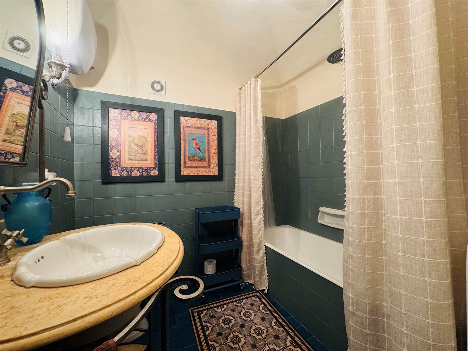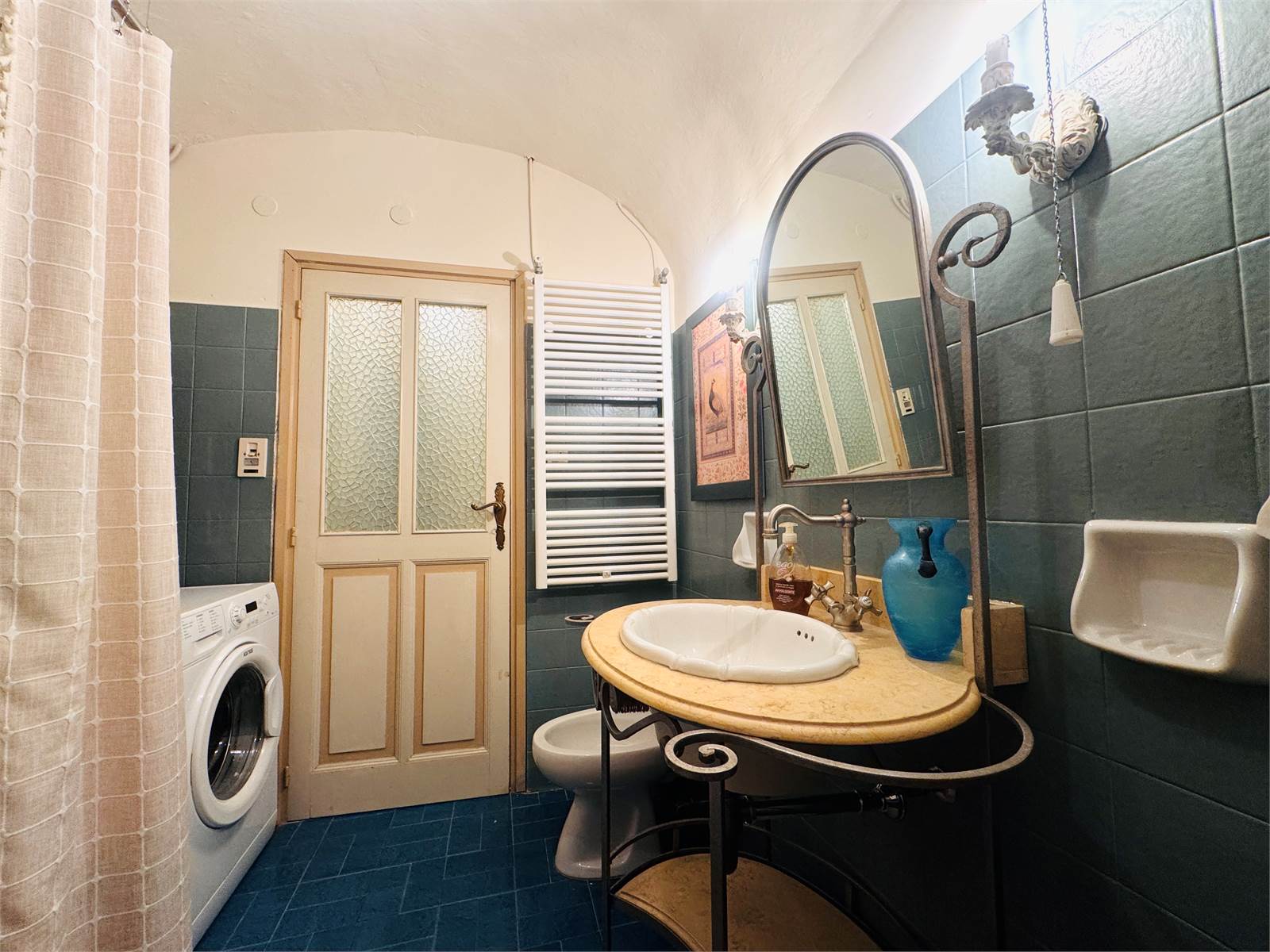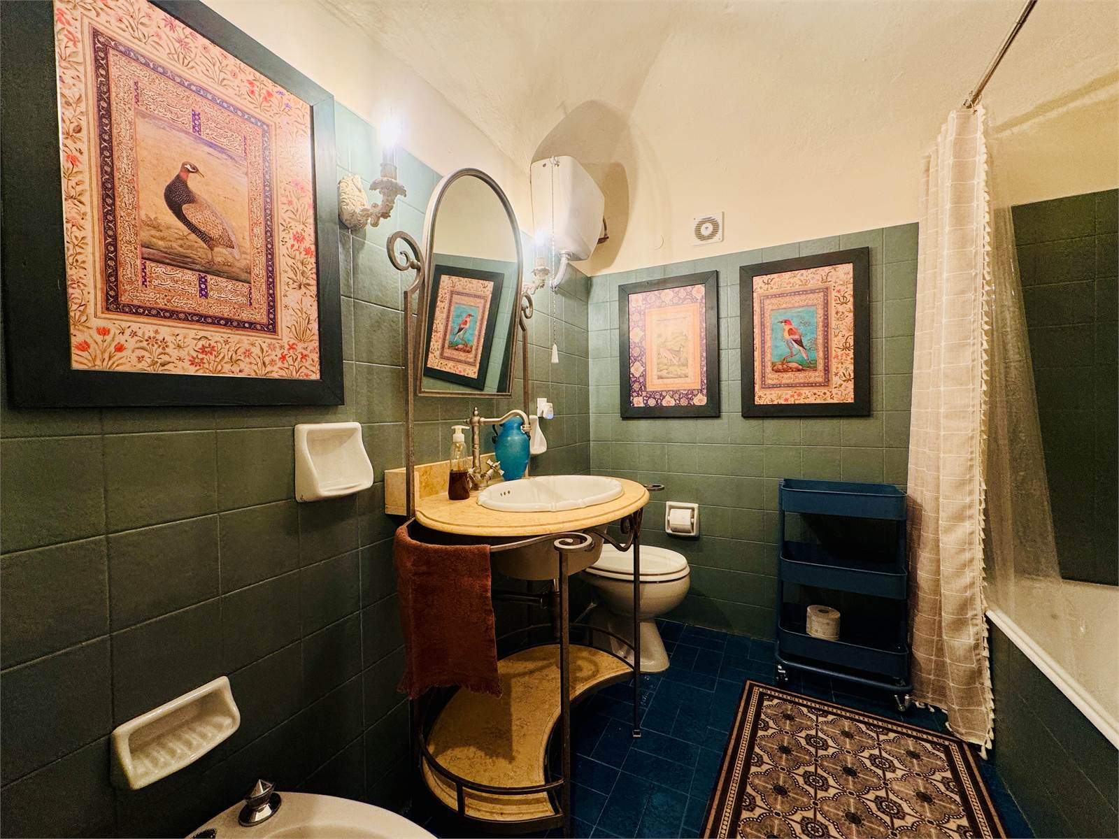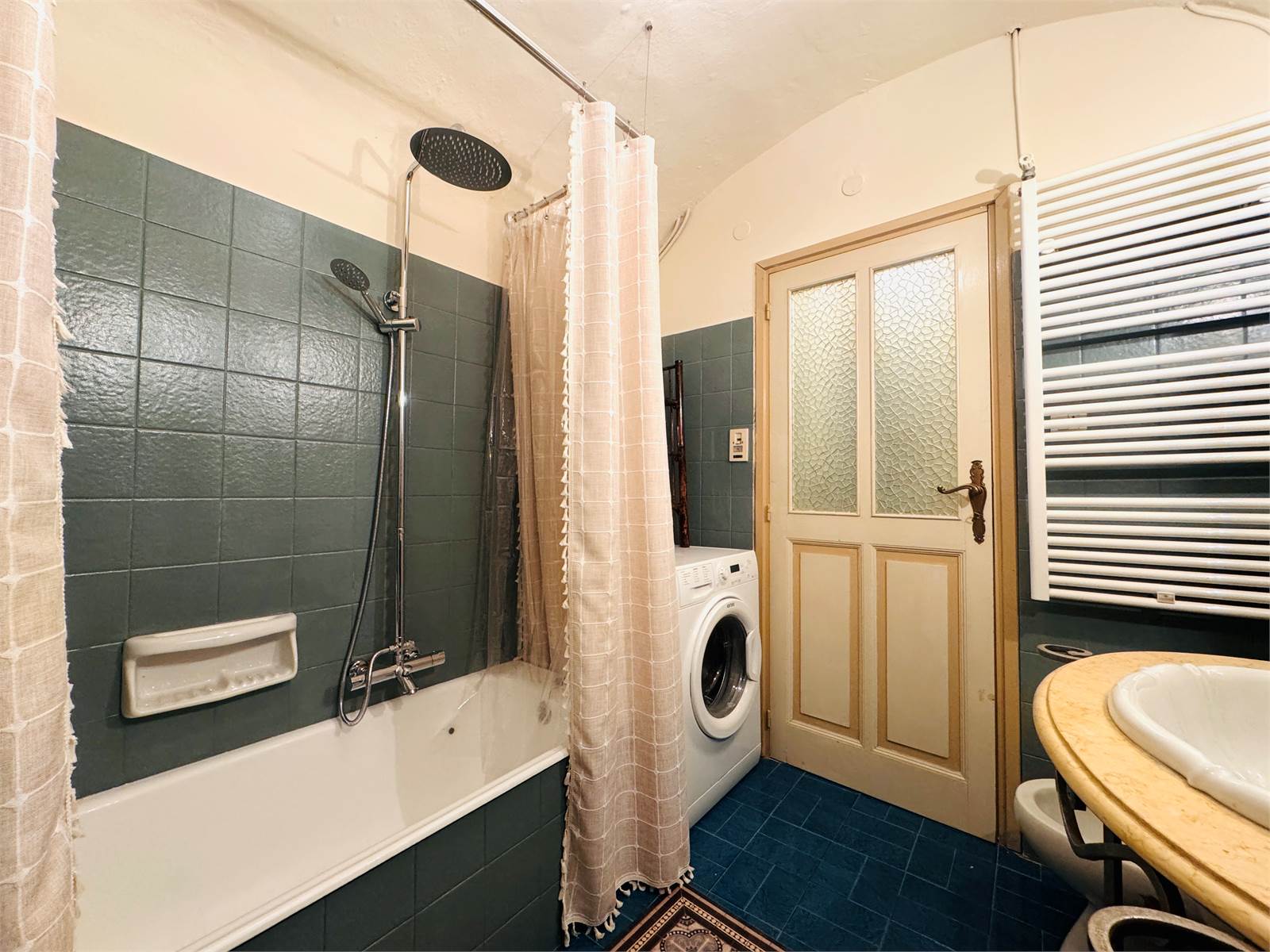 Proseguendo si raggiunge il primo piano, composto da due spaziose camere da letto matrimoniali, un ampio bagno finestrato con vasca e aspirazione forzata, una sala da pranzo con affascinanti soffitti a volta e pavimenti originali in ottimo stato, una cucina separata e una comoda zona soggiorno/relax, gli ambienti risultano tutti luminosi e ariosi grazie alla doppia esposizione e le molte finestre.