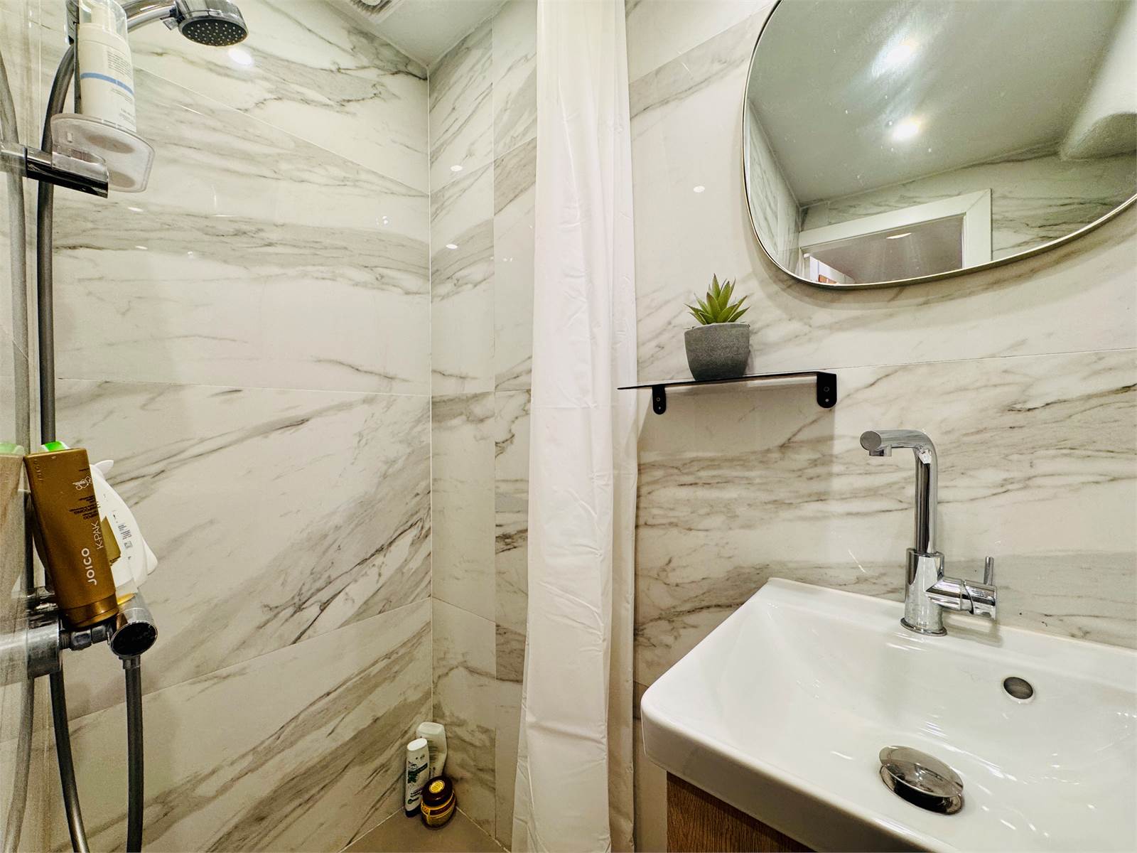 L’ingresso si apre su un ampio soggiorno, ben suddiviso in zona pranzo e area relax. La cucina, separata e arredato su misura, è dotata di un piccolo tavolo con due sedie, ideale per colazioni o pasti veloci. Il bagno, anch’esso ristrutturato, dispone di aspirazione forzata e box doccia.
