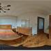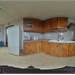 La cucina abitabile ed il soggiorno sono posizionati nella parte a valle della casa e sono resi luminosi dall'esposizione a sud e dal fatto di avere cinque finestre. I due vani sono adiacenti e suddivisi solo da una tramezza, il che permetterebbe di creare con poco lavoro una zona giorno unica che può misurare circa 40 metri quadrati.