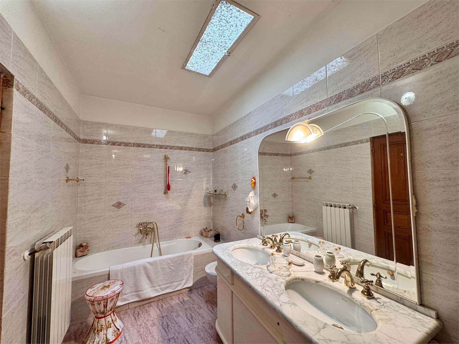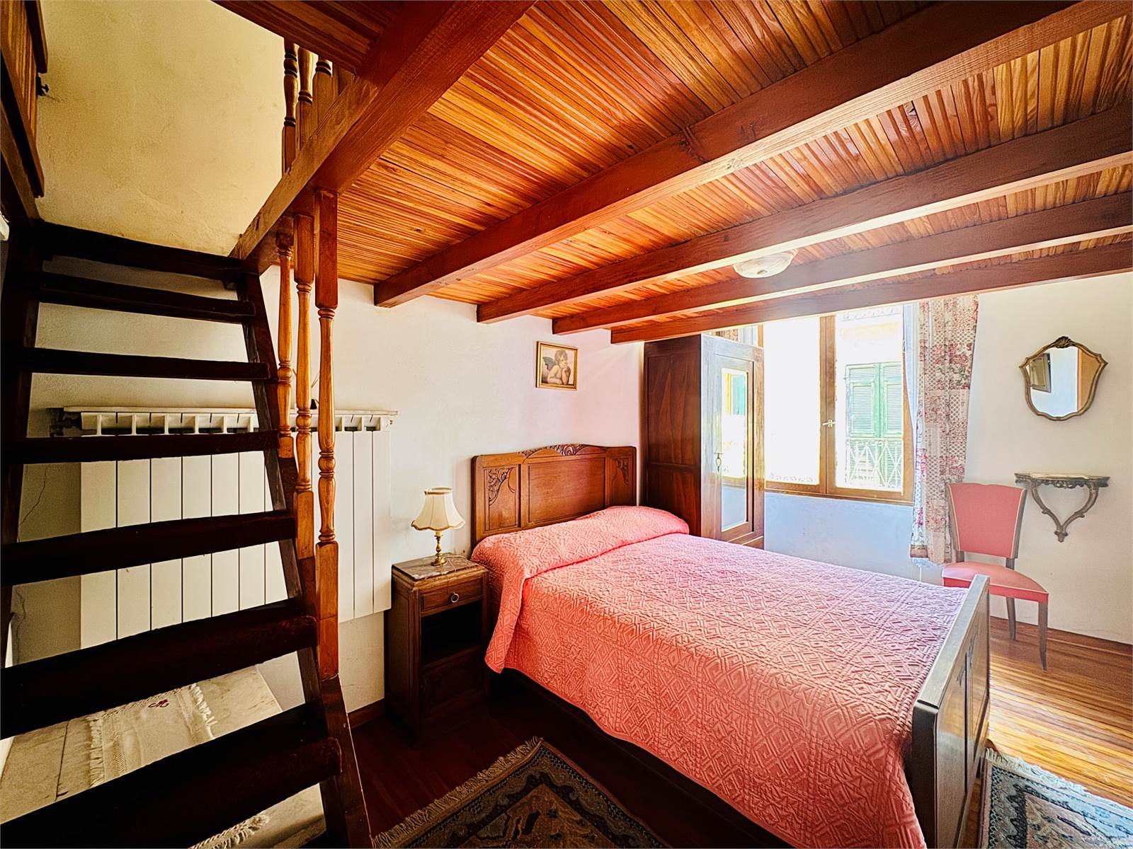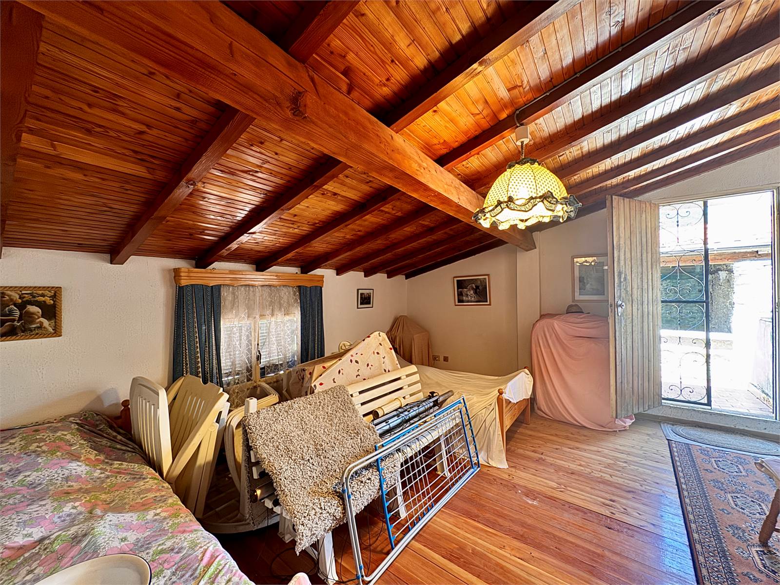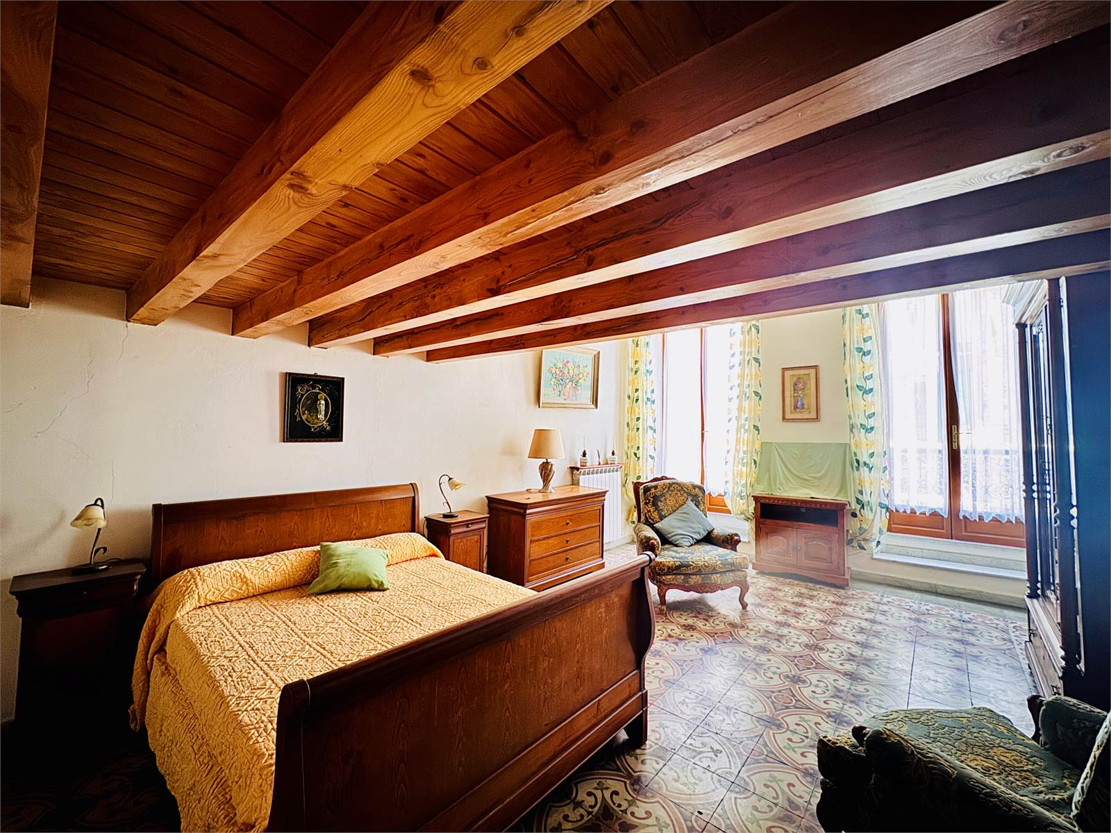 Al primo piano dell'abitazione sono presenti due alloggi indipendenti sia come impianti che come ingresso, che però possono essere accorpati in un unico grande appartamento in quanto già dotati di porta interna di comunicazione. Un alloggio è suddiviso in un unico ambiente con cucina abitabile e soggiorno, bagno cieco con doccia e camera da letto con pavimento in parquet, soppalco in legno e balcone, mentre il secondo appartamento è strutturato in soggiorno con cucina a vista, bagno cieco con doccia e camera da letto matrimoniale con pavimento in cotto decorato e soppalco in legno.