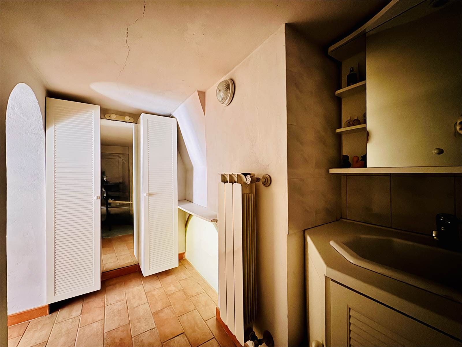L'abitazione è dotata di impianto di riscaldamento a termosifoni alimentati da caldaia a gas e c'è la possibilità di allacciarsi al metano.