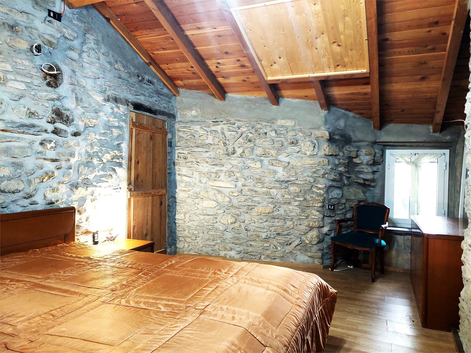 Tutti i vani dell'abitazione hanno la particolarità di avere muri in pietra e soffitti in travi e assi di legno a vista.