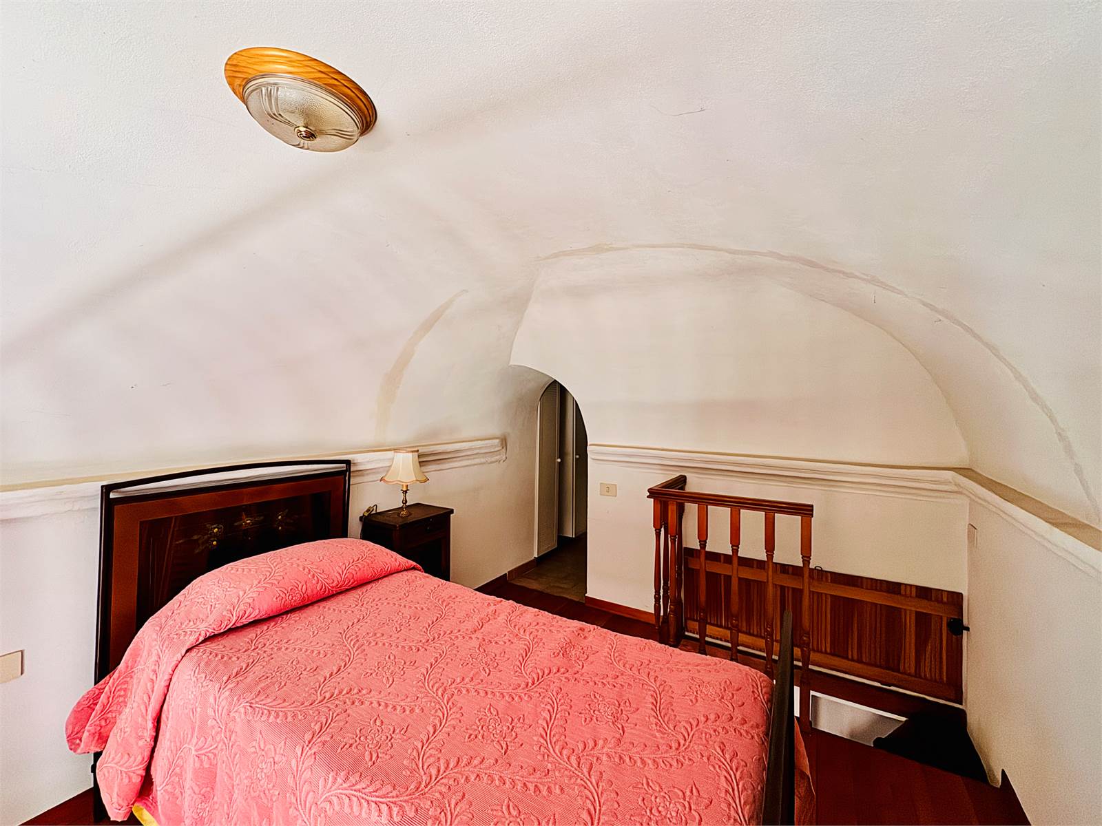 Al primo piano dell'abitazione sono presenti due alloggi indipendenti sia come impianti che come ingresso, che però possono essere accorpati in un unico grande appartamento in quanto già dotati di porta interna di comunicazione. Un alloggio è suddiviso in un unico ambiente con cucina abitabile e soggiorno, bagno cieco con doccia e camera da letto con pavimento in parquet, soppalco in legno e balcone, mentre il secondo appartamento è strutturato in soggiorno con cucina a vista, bagno cieco con doccia e camera da letto matrimoniale con pavimento in cotto decorato e soppalco in legno.