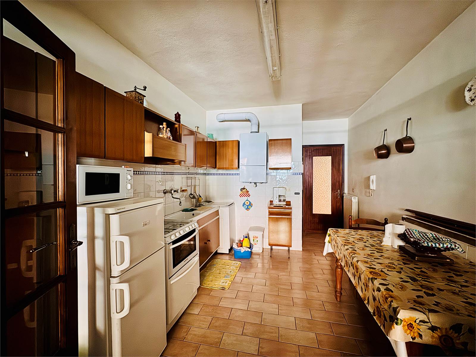 L'abitazione è dotata di impianto di riscaldamento a termosifoni alimentati da caldaia a gas e c'è la possibilità di allacciarsi al metano.